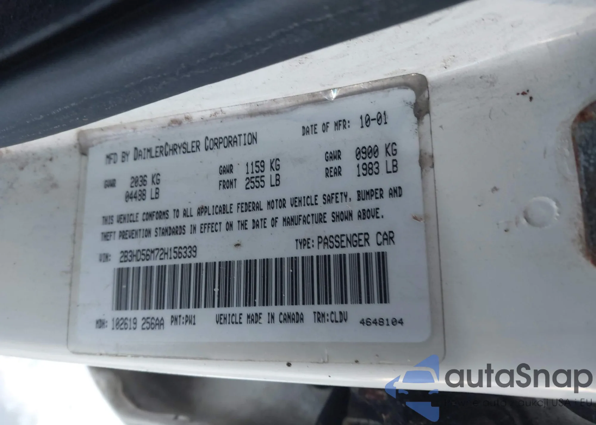 LOT: 43688420 VIN: JTDKB20U583360179