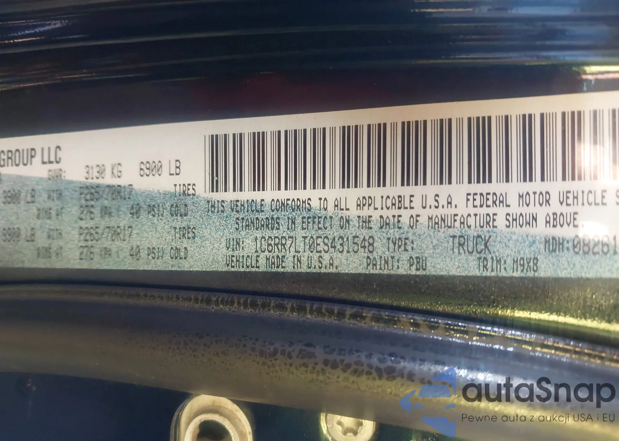 • VIN 1C4RJFBG7KC532915
