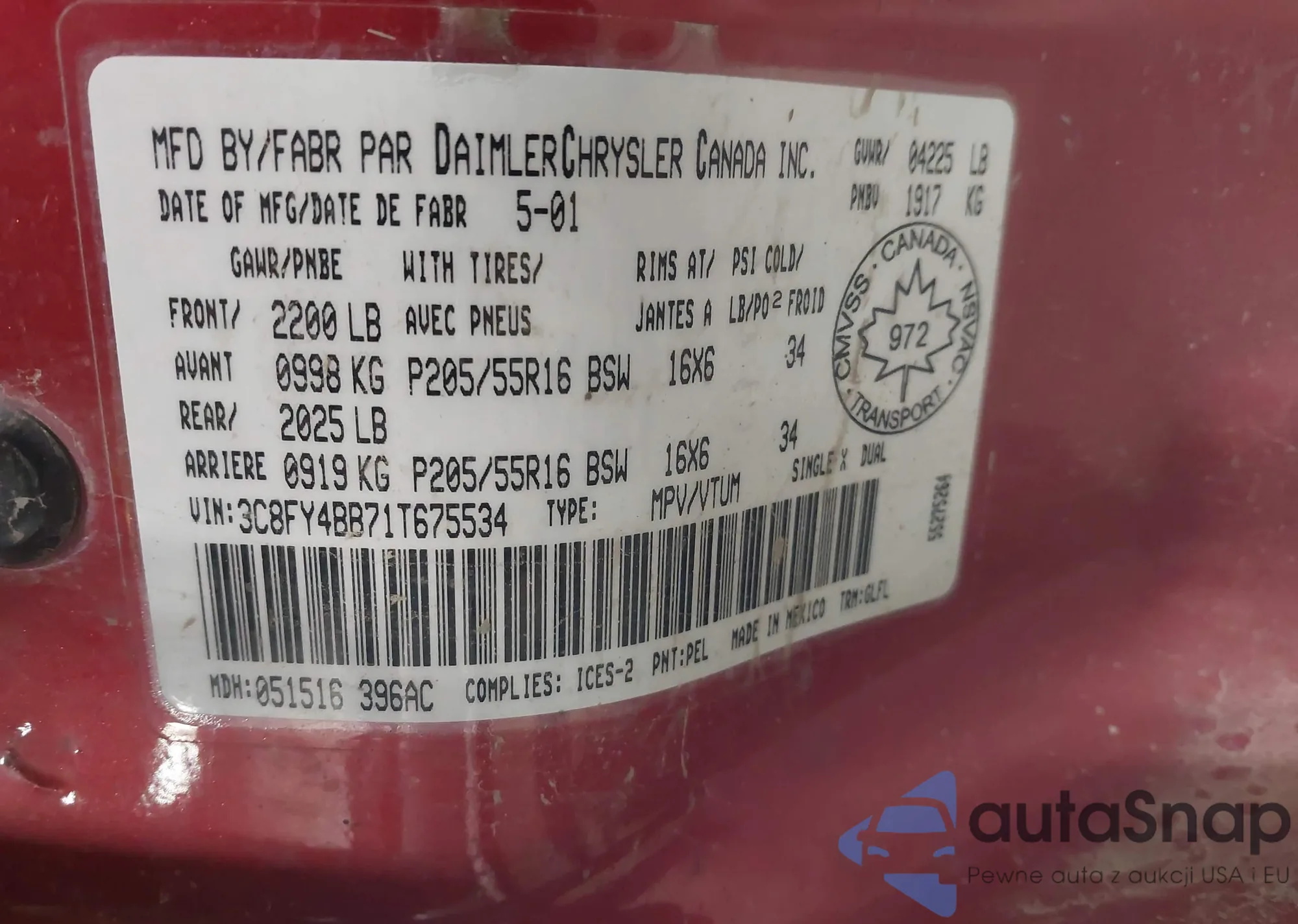 • VIN 2GTEK19T5Y1322040
