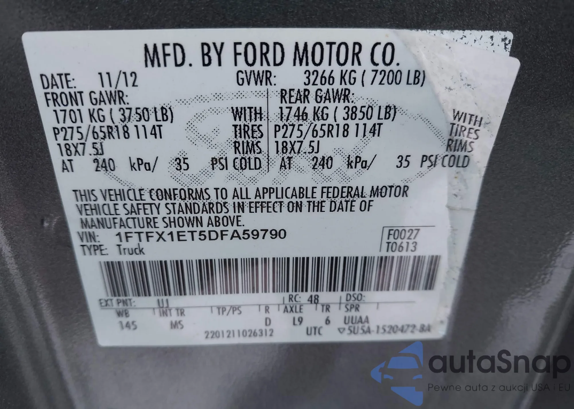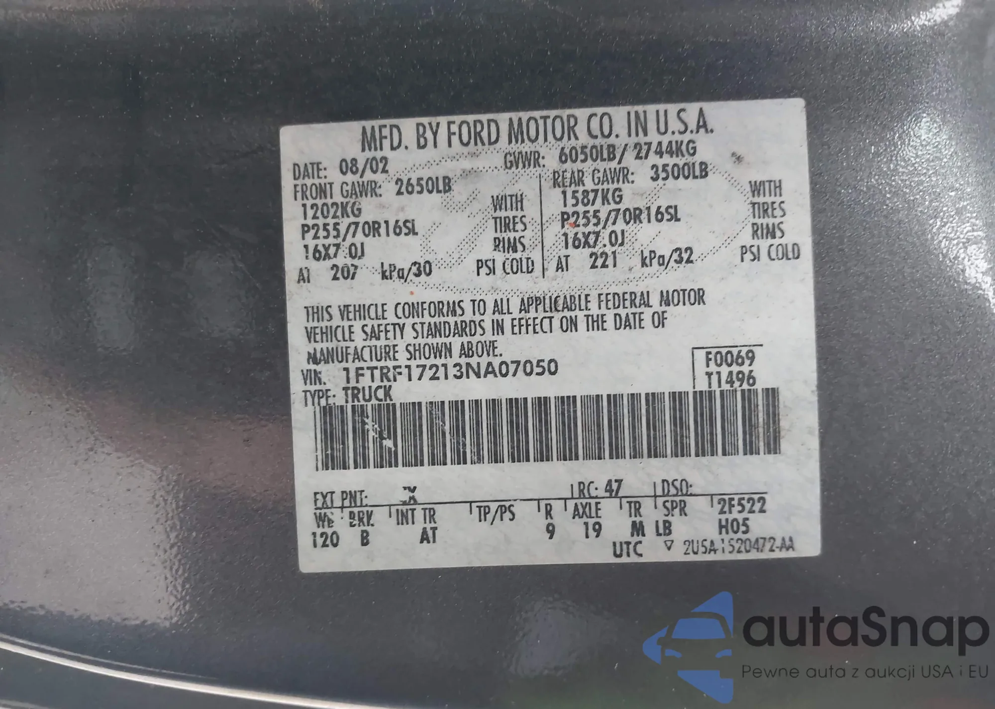 LOT: 43799243 VIN: 1FTRF17213NA07050