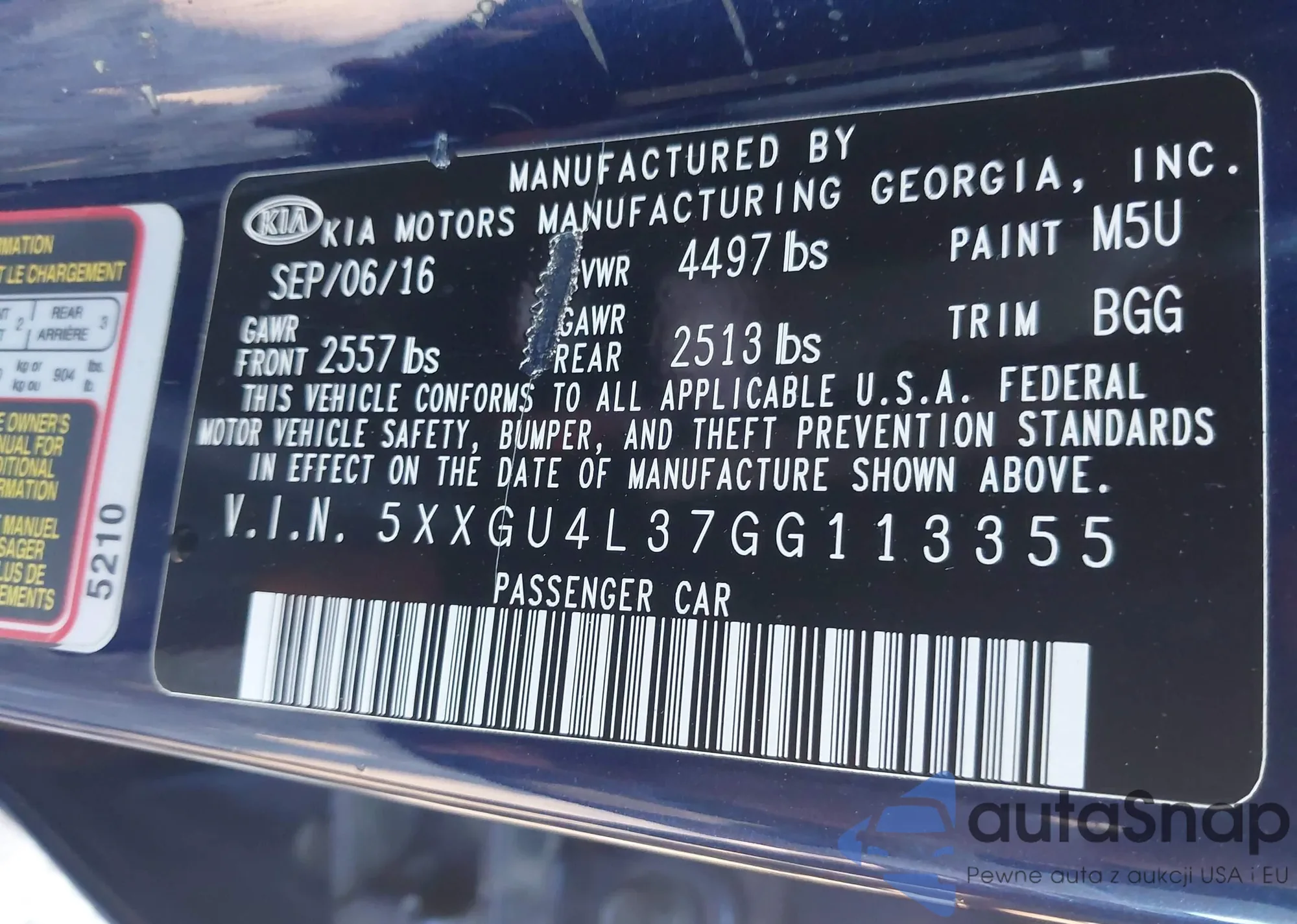 • VIN 5XXGU4L37GG113355