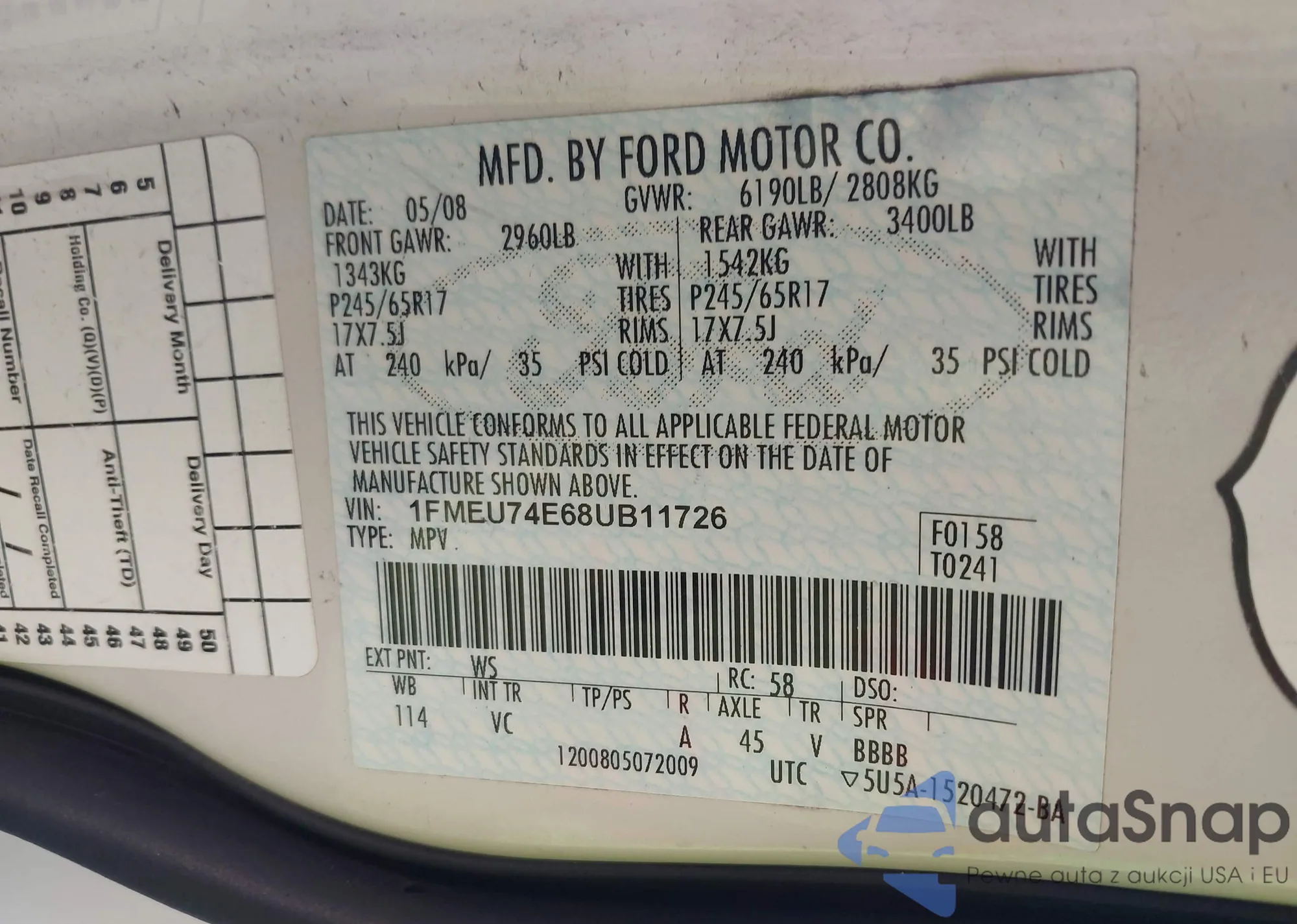 LOT: 43975124 VIN: 1FMEU74E68UB11726