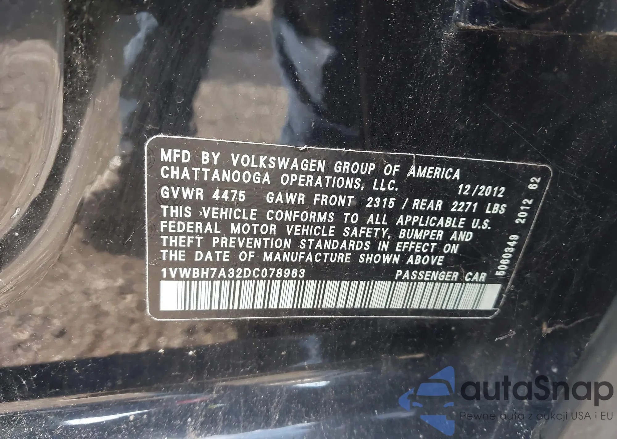 • VIN 1VWBH7A32DC078963