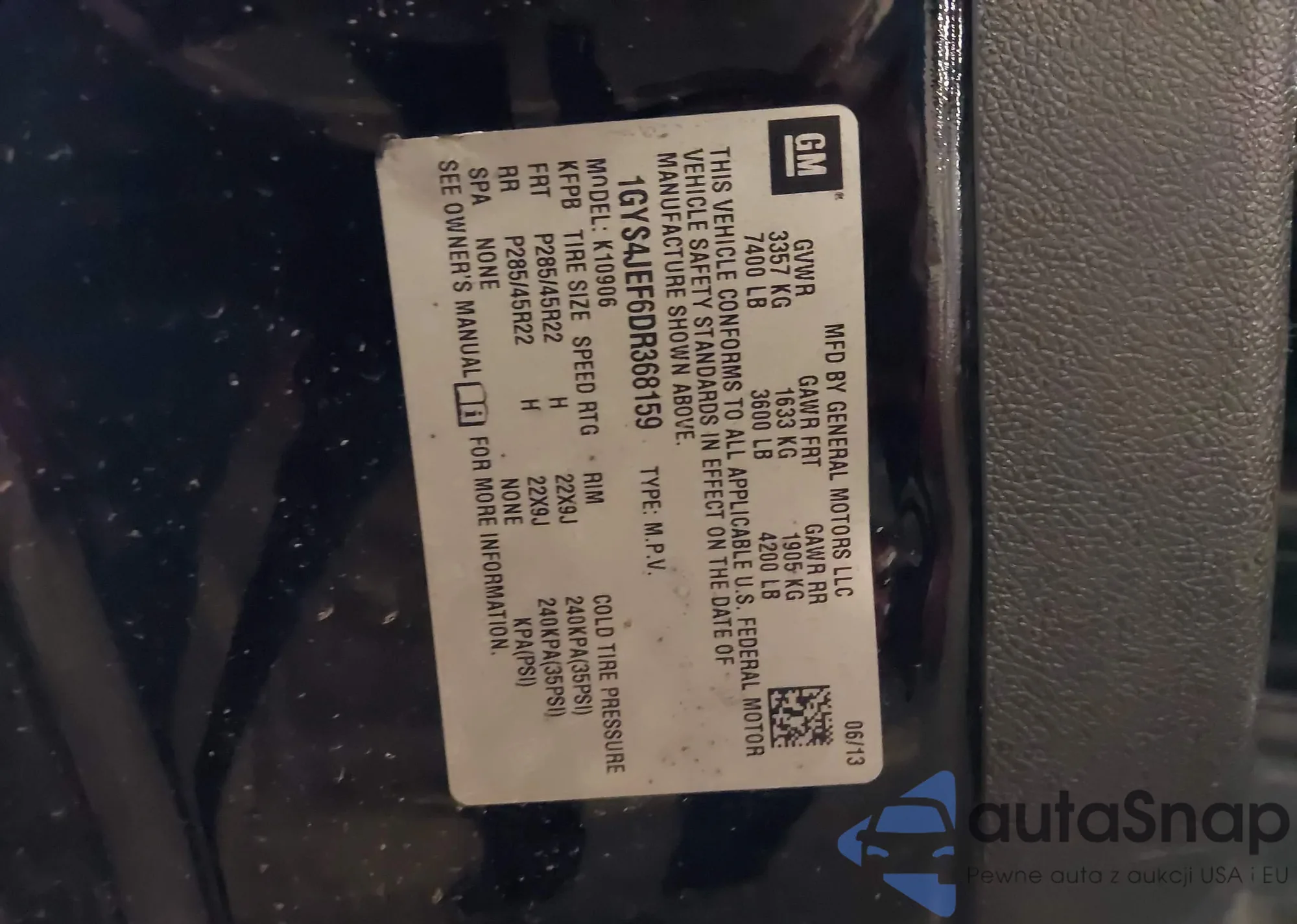 • VIN 1GYS4JEF6DR368159
