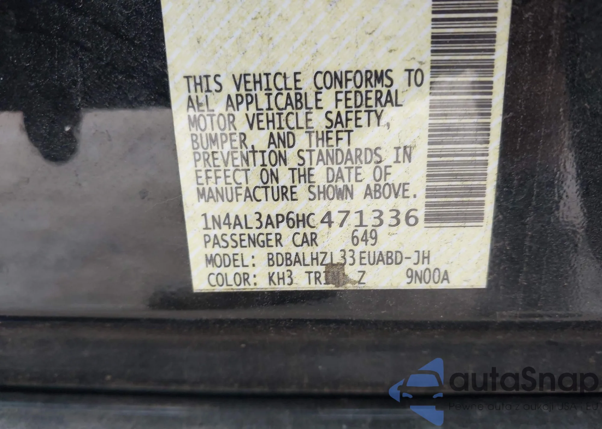 • VIN 1N4AL3AP6HC471336