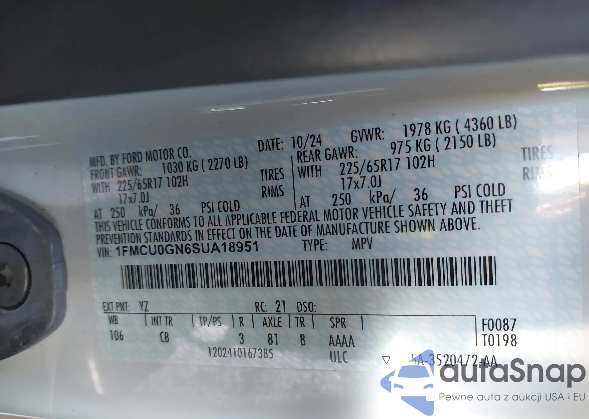 • VIN 1FMCU0GN6SUA18951