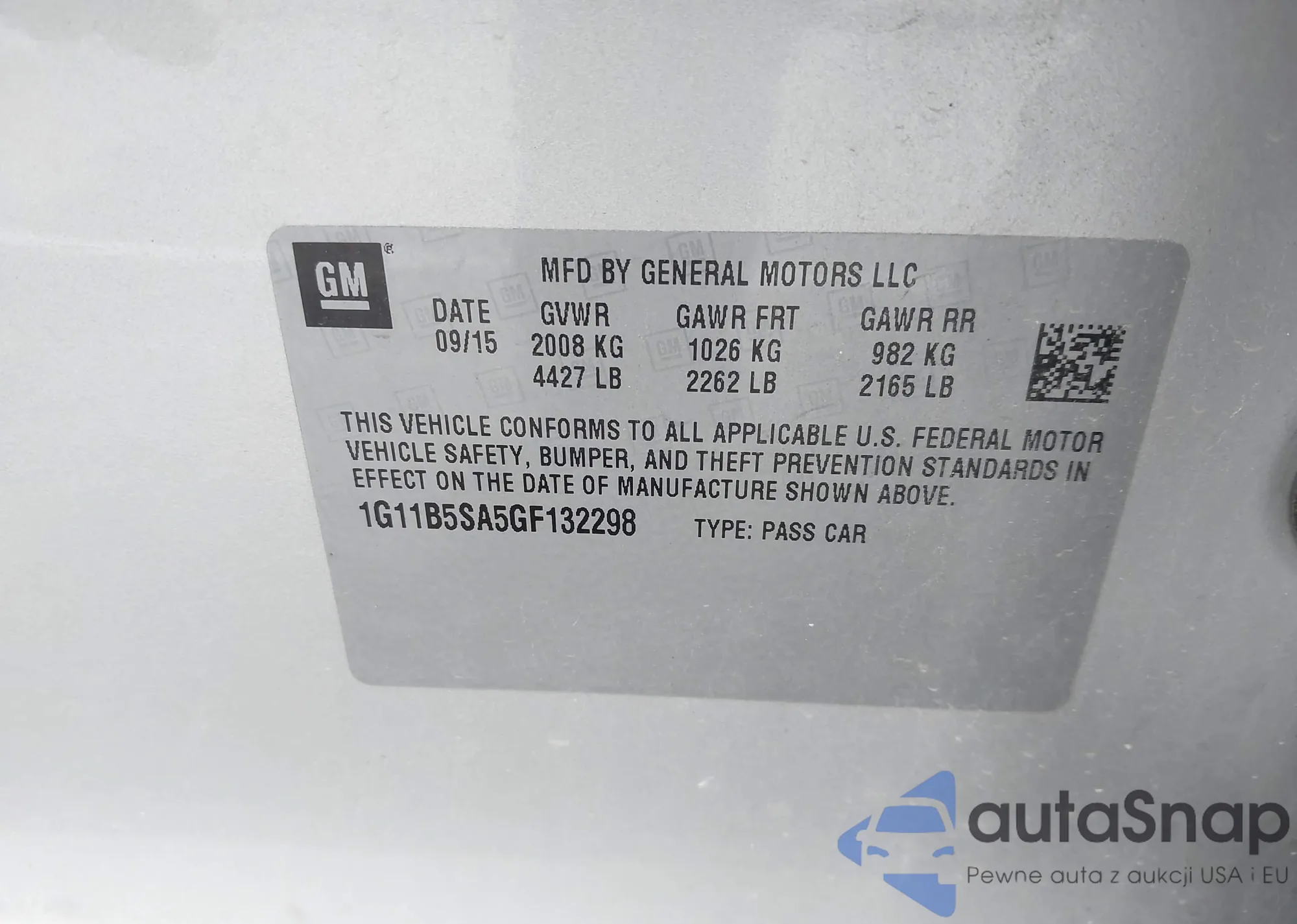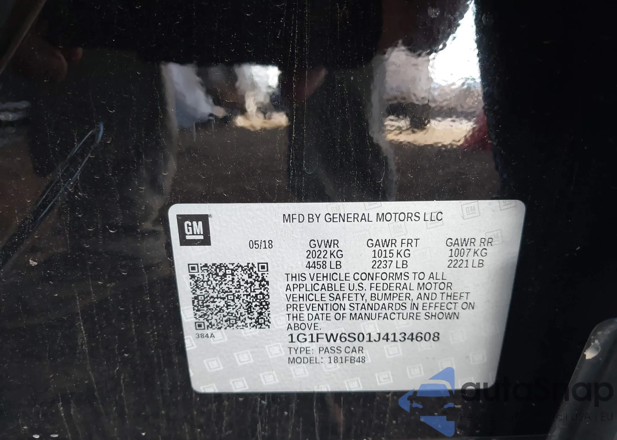 LOT: 43762197 VIN: 1G1FW6S01J4134608