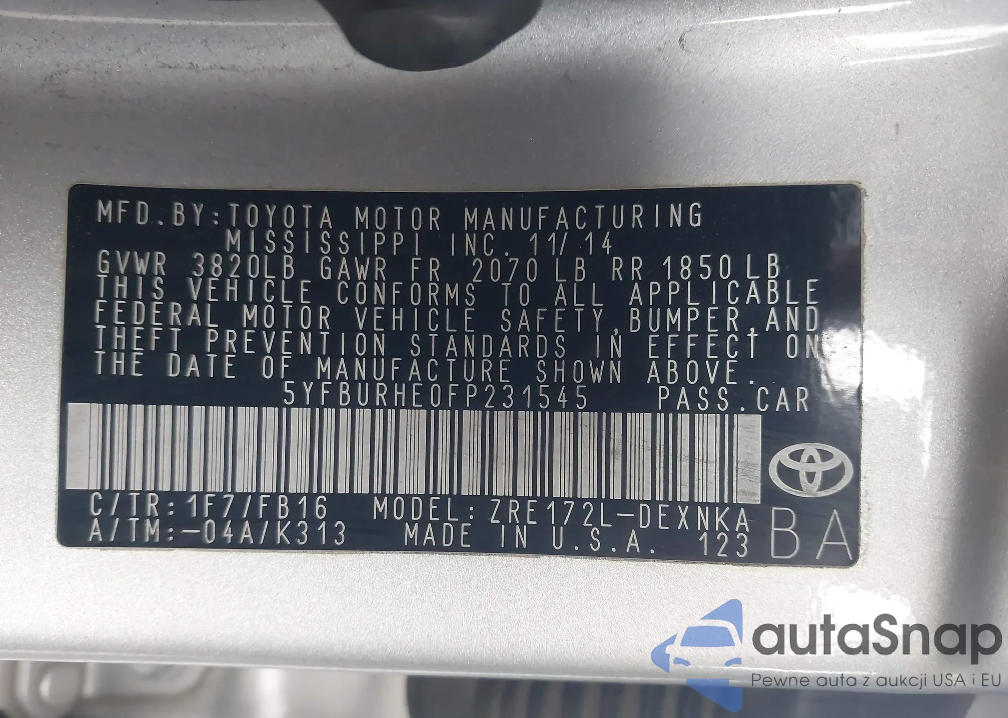 • VIN 5N1BT3BA8RC724064