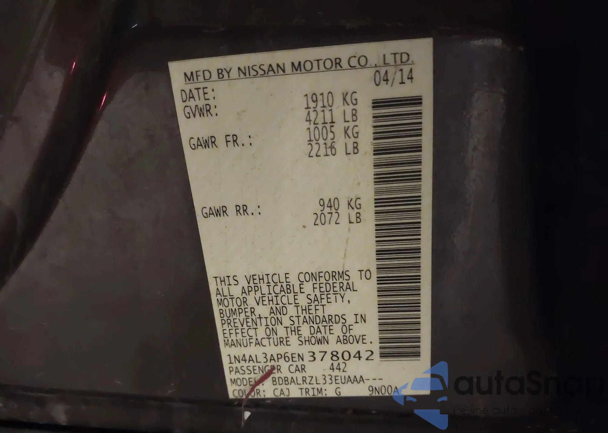 LOT: 43863218 VIN: 1C3CDZAB6EN147895