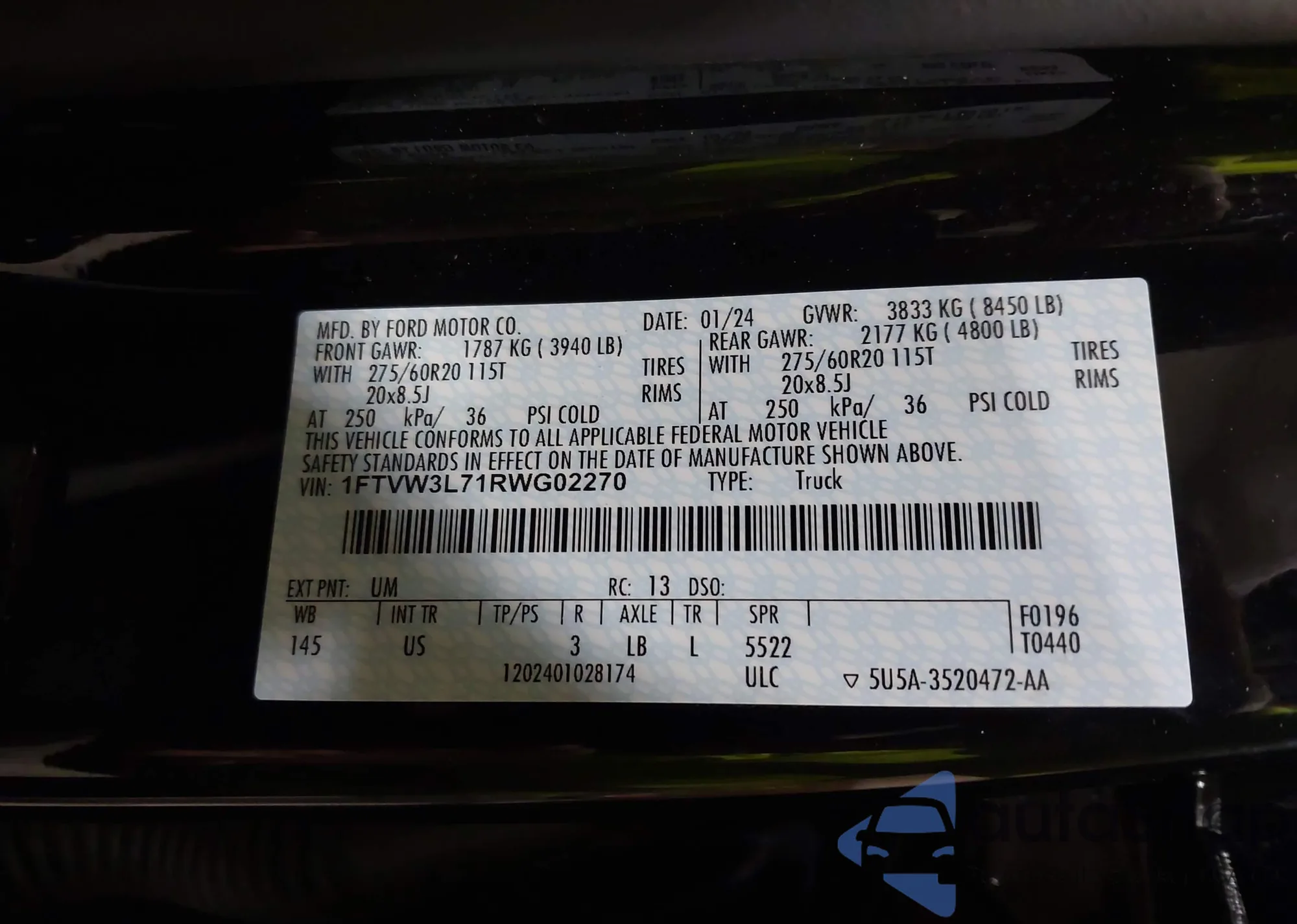 • VIN 1FTVW3L71RWG02270