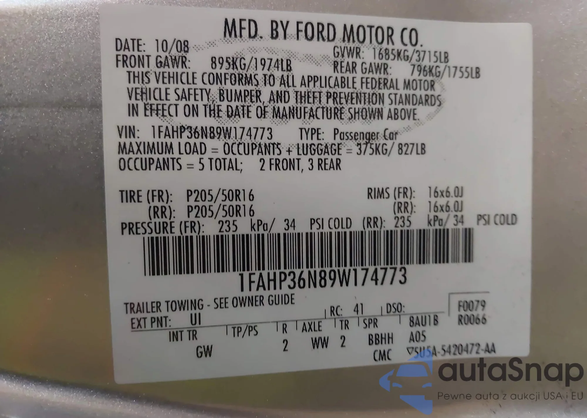 • VIN 1SAHP36N89W174773