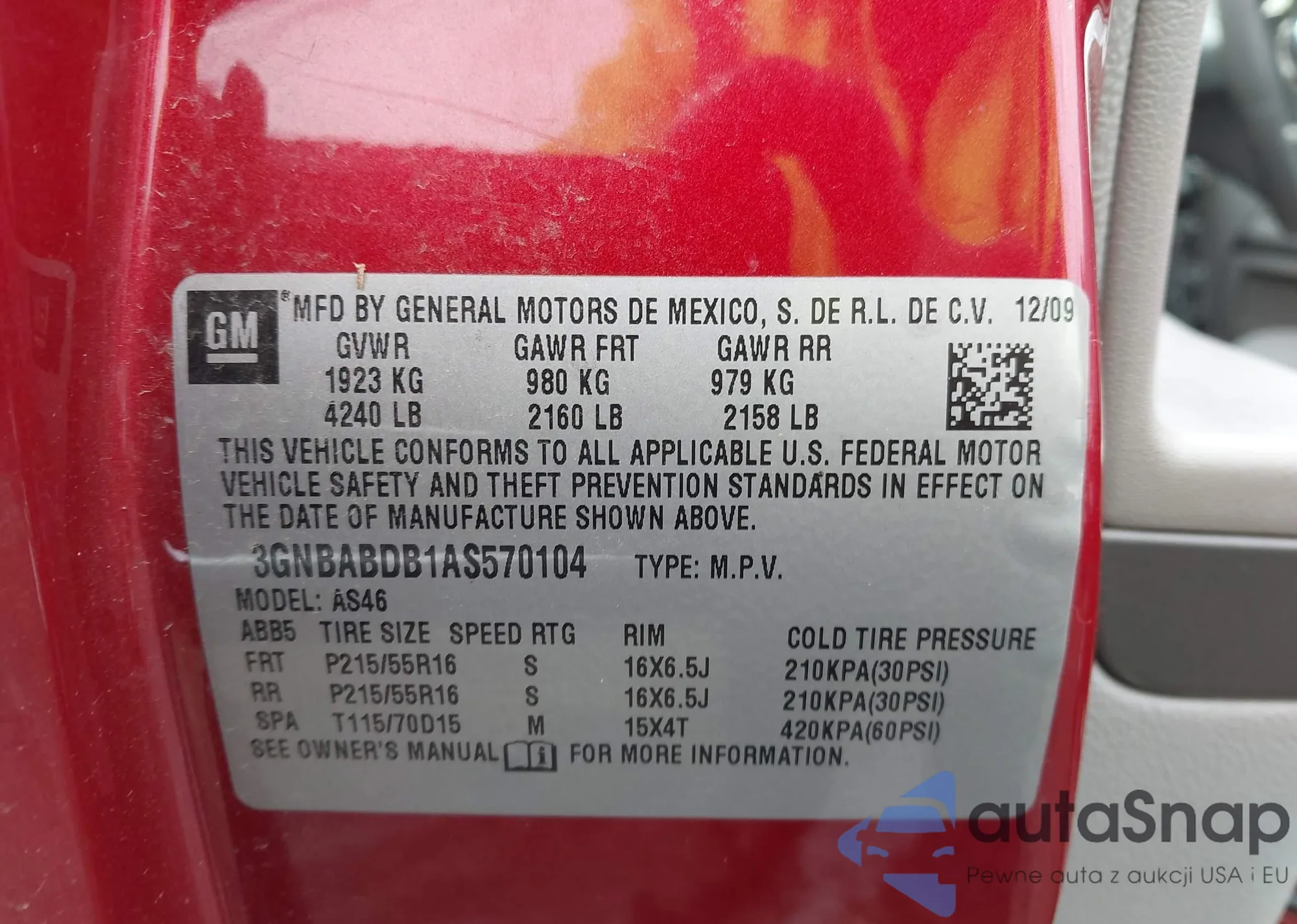 LOT: 43926954 VIN: 3GNBABDB1AS570104