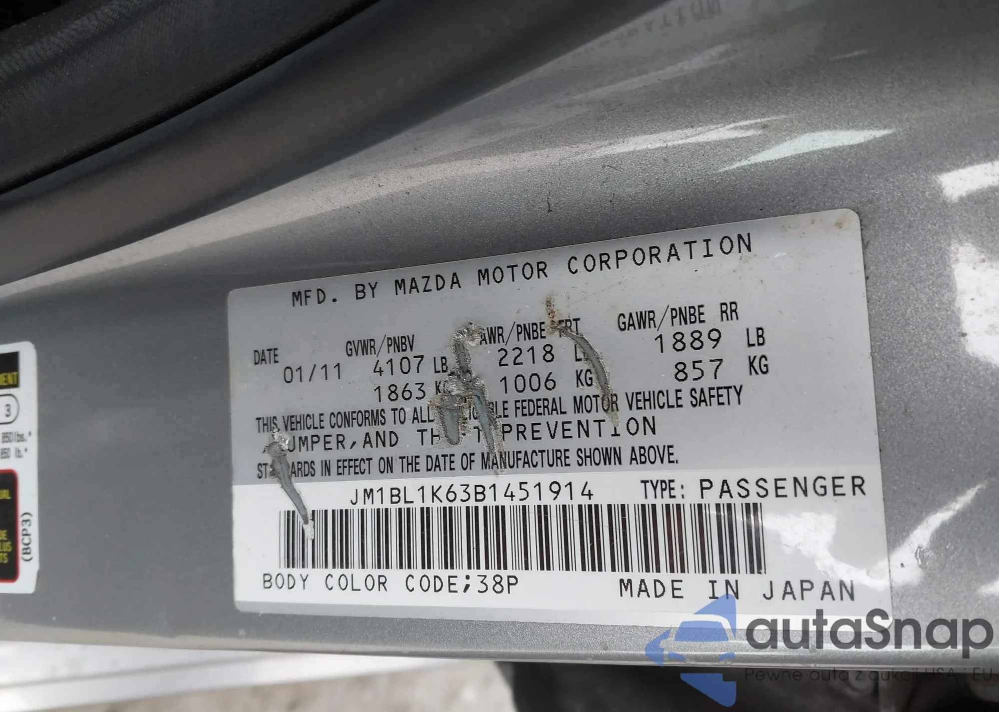 LOT: 43939782 VIN: JM1BL1K63B1451914
