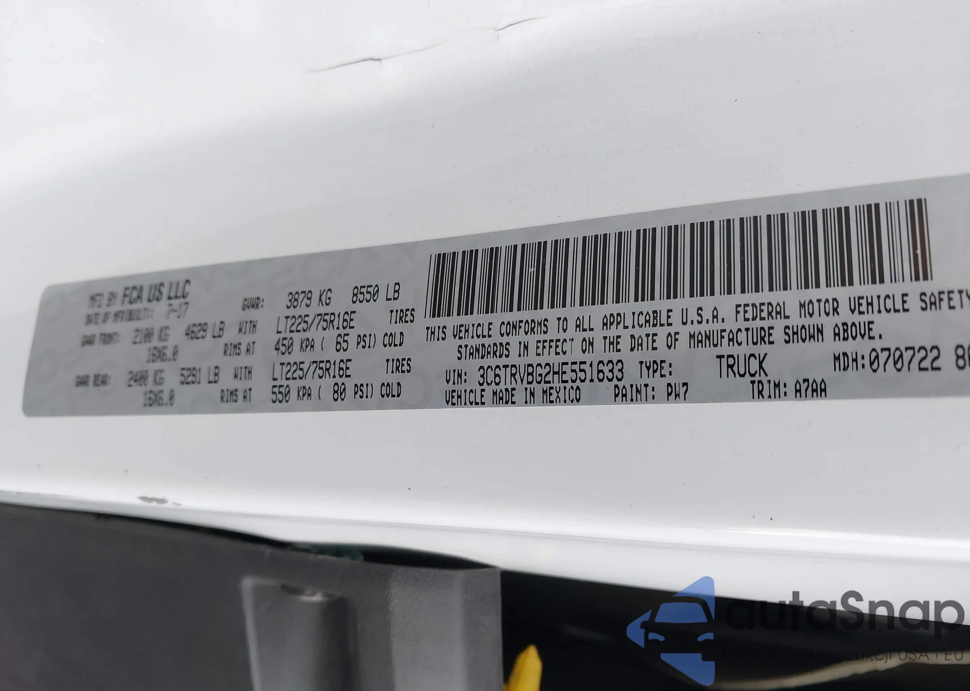 • VIN 3C6TRVBG2HE551633