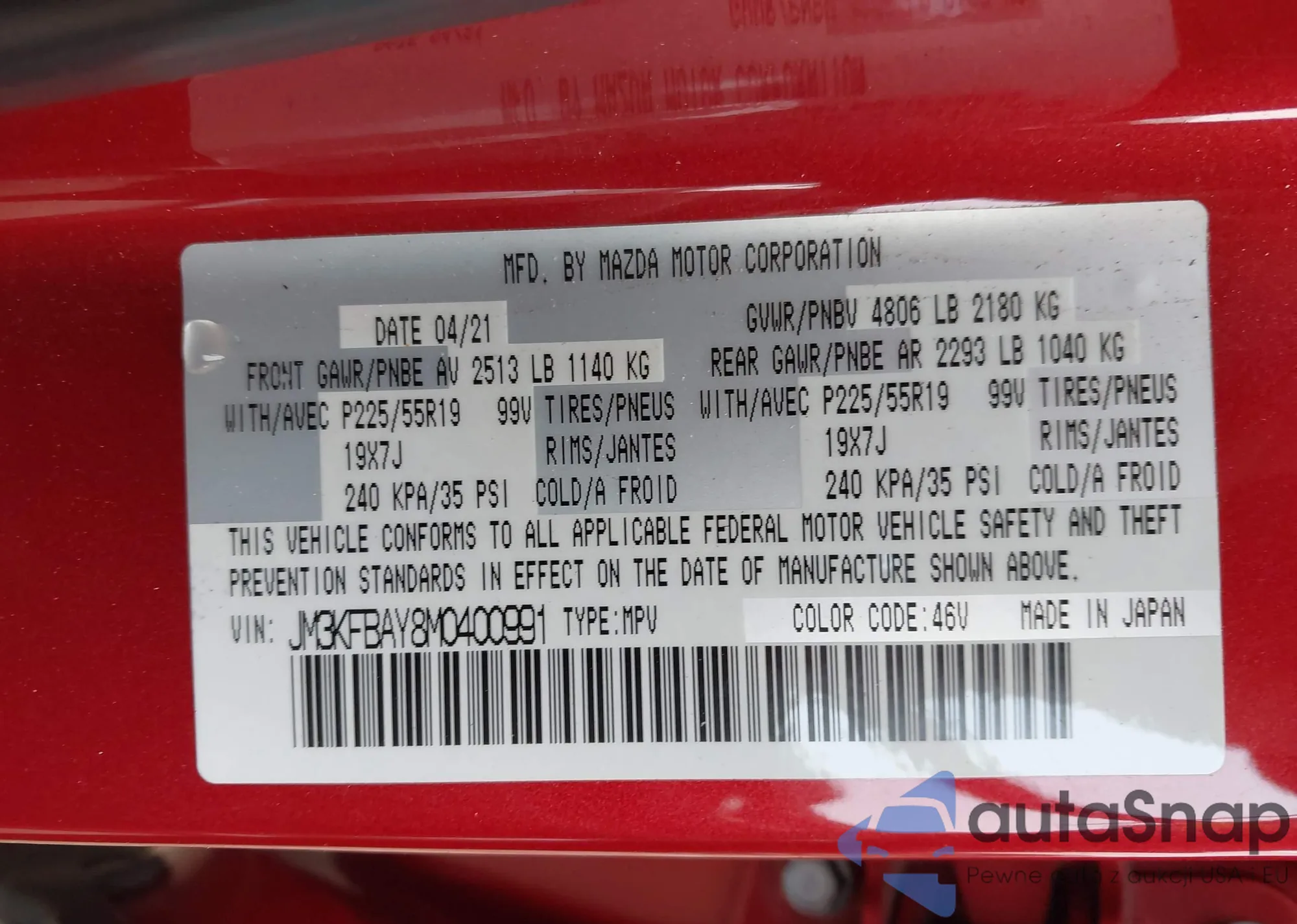 LOT: 43950412 VIN: JM3KFBAY8M0400991