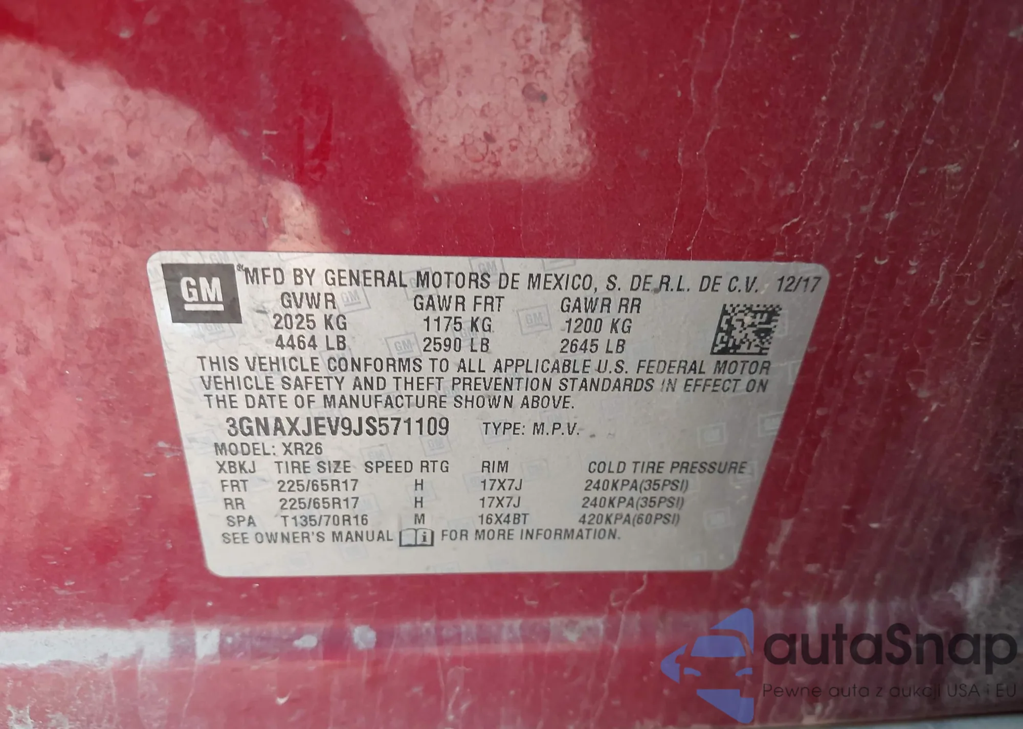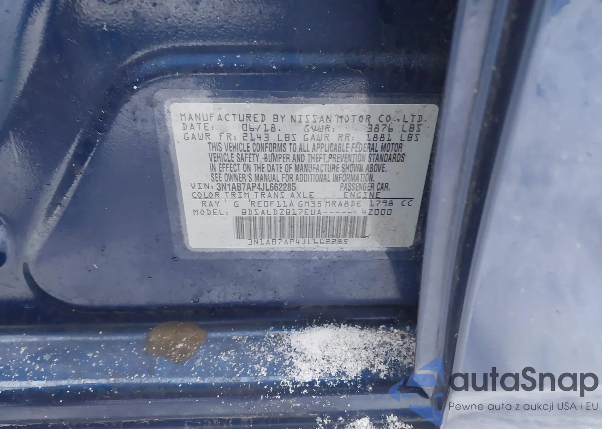 LOT: 43963625 VIN: 3N1AB7AP4JL662285