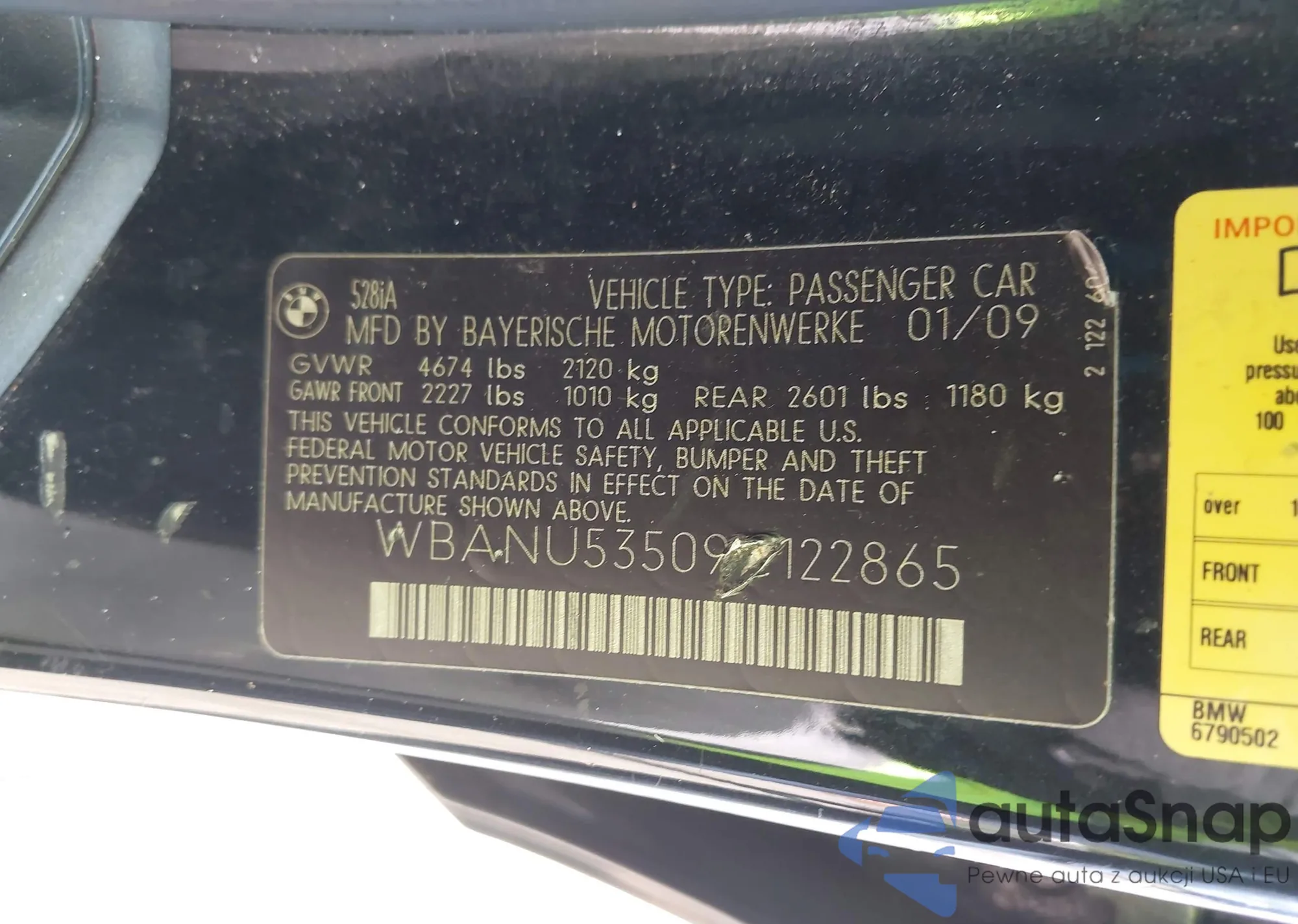 2009 BMW 528I z USA, uszkodzony, nr VIN WBANU53509C122865