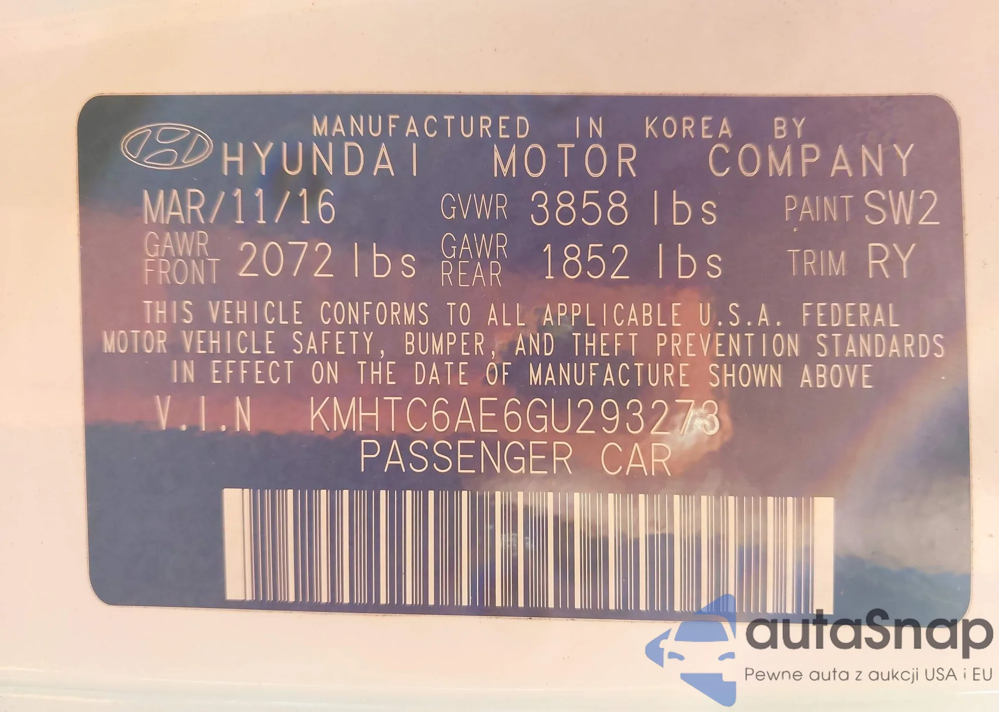 • VIN KMHTC6AE6GU293273