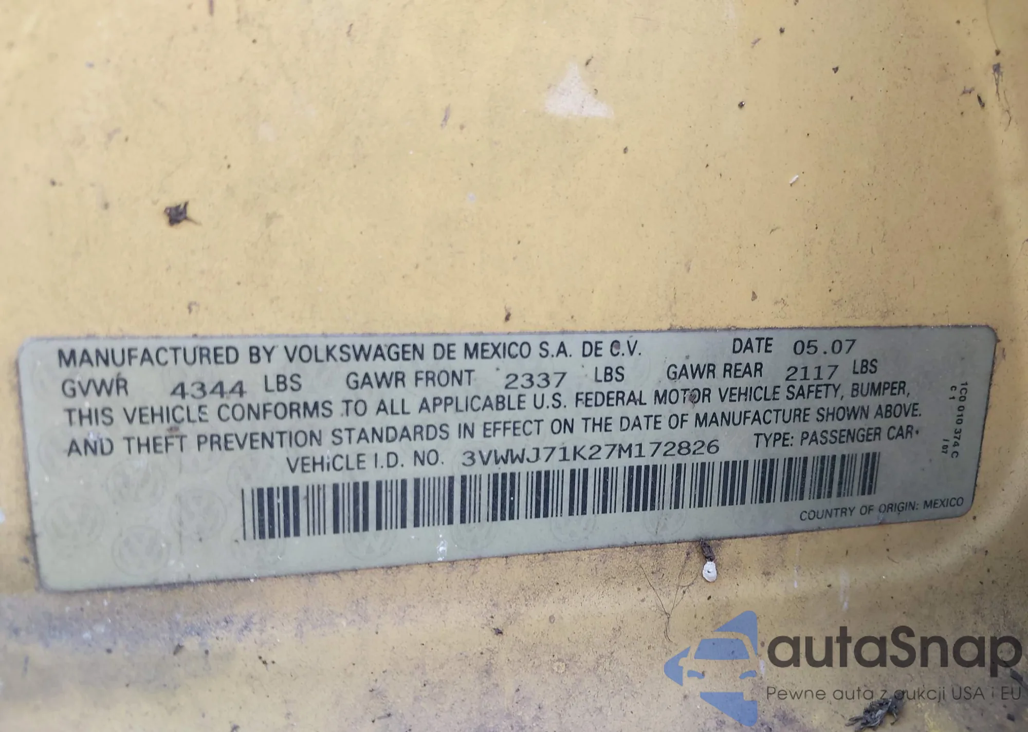 • VIN WD3PE7CC5E5837927