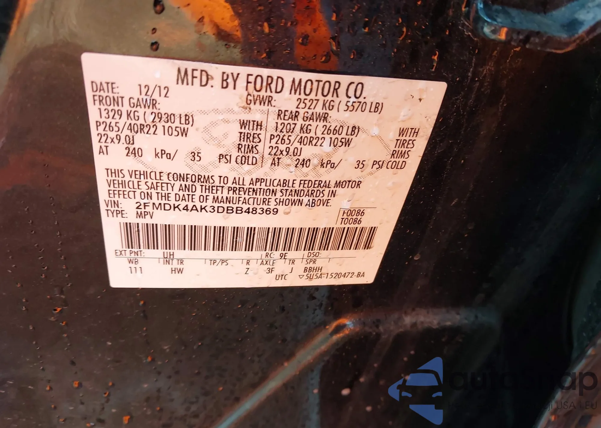 • VIN 2FMDK4AK3DBB48369