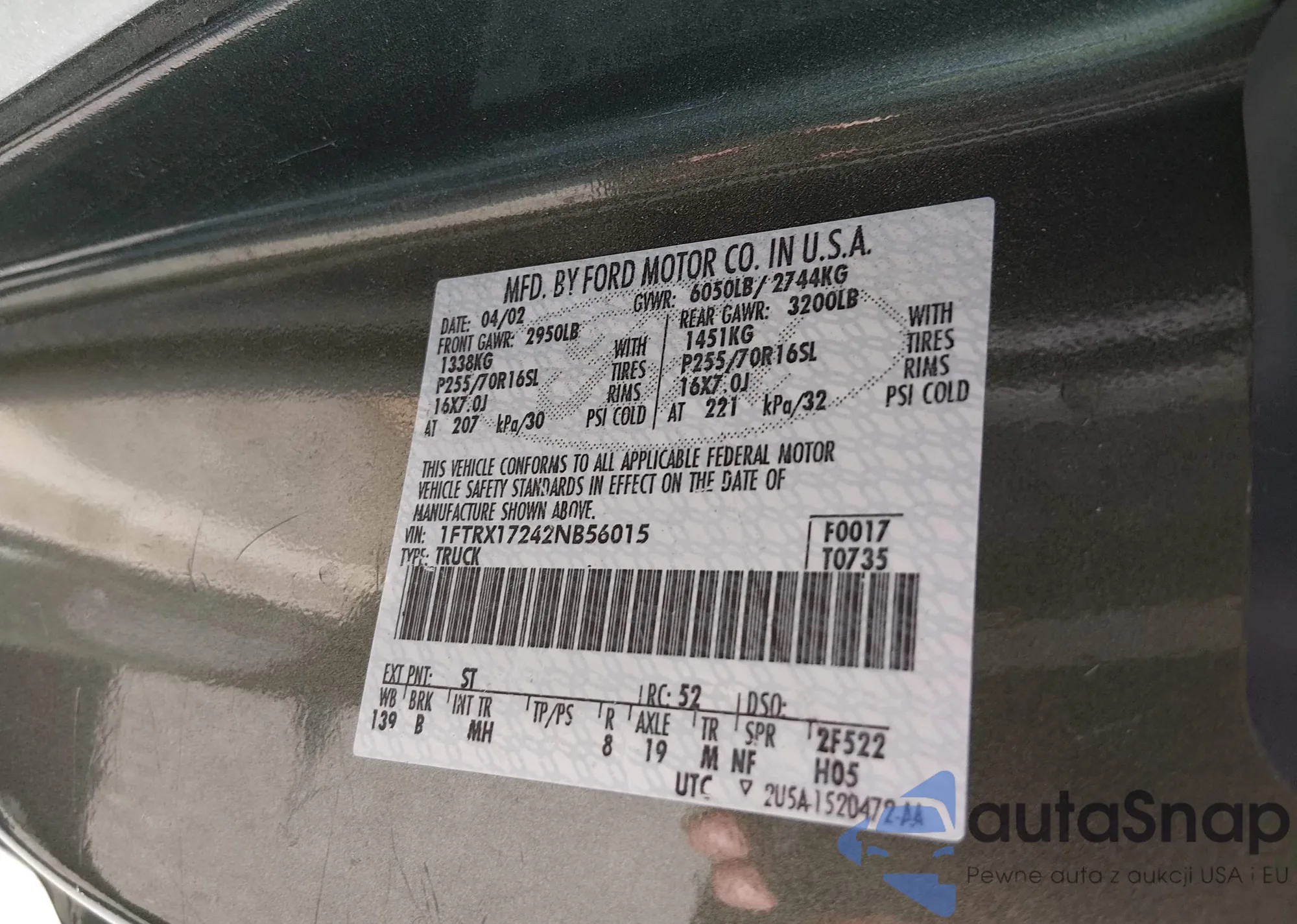 • VIN 1FTRX17242NB56015