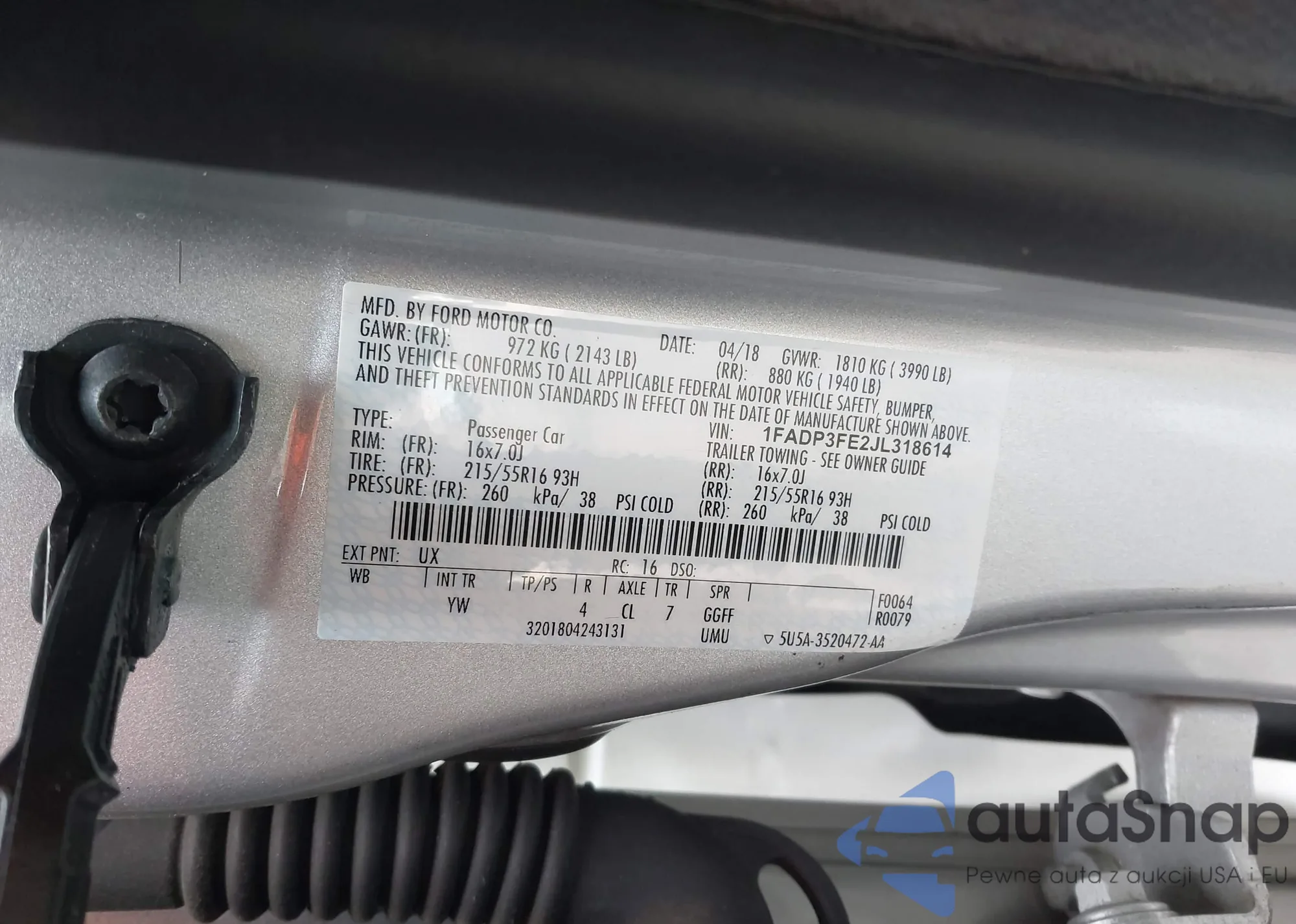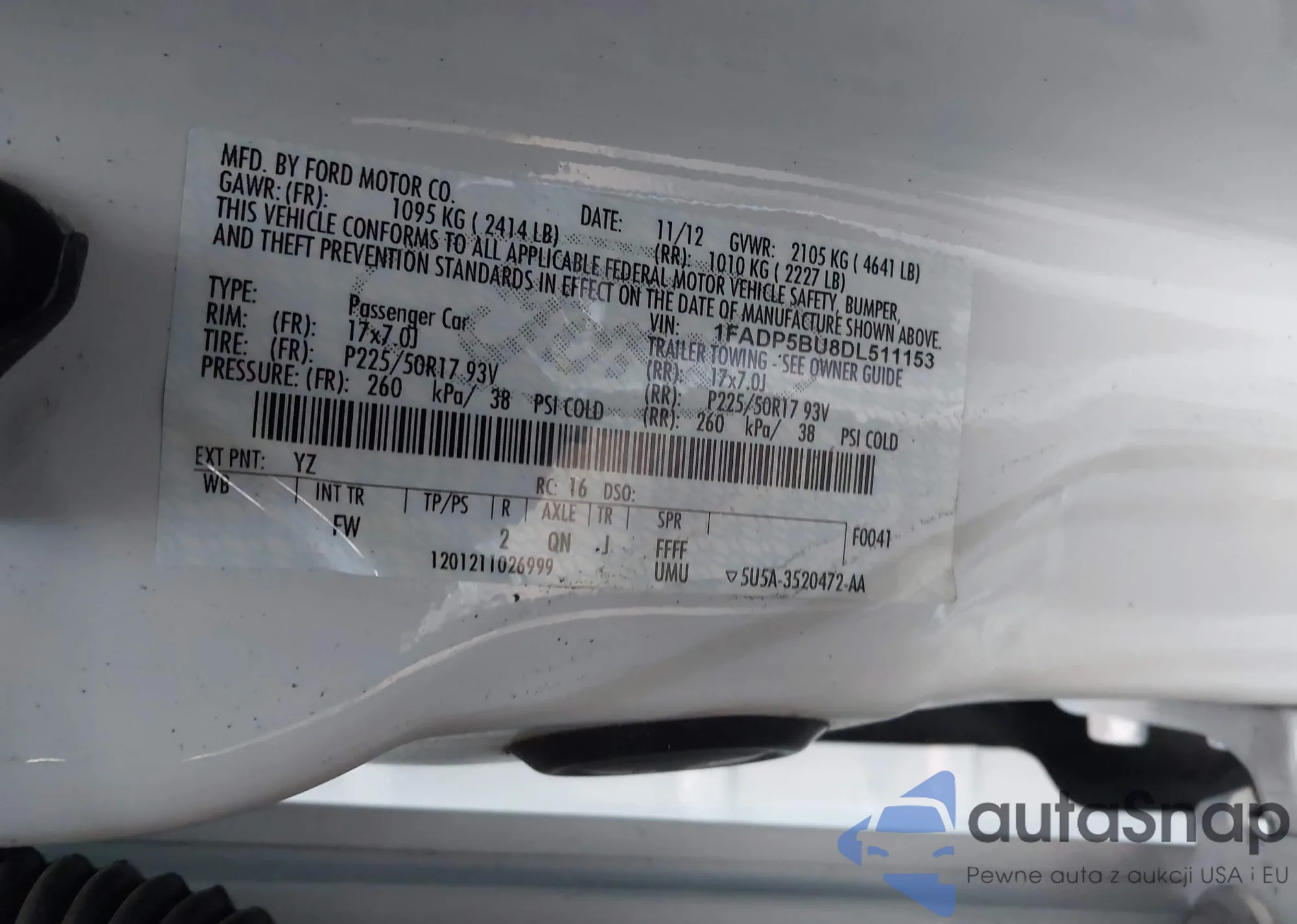 LOT: 43935604 VIN: 1FADP5BU8DL511153