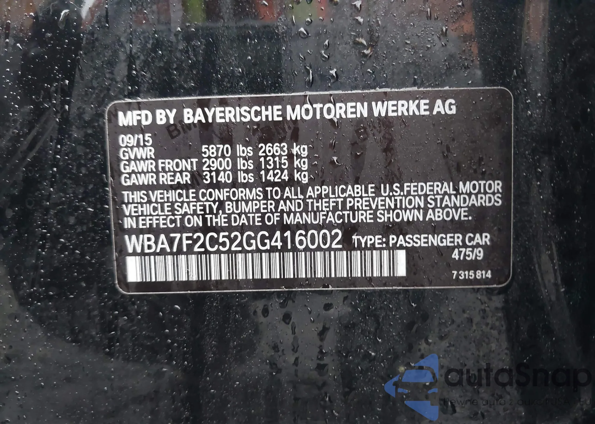 • VIN WBA7F2C52GG416002