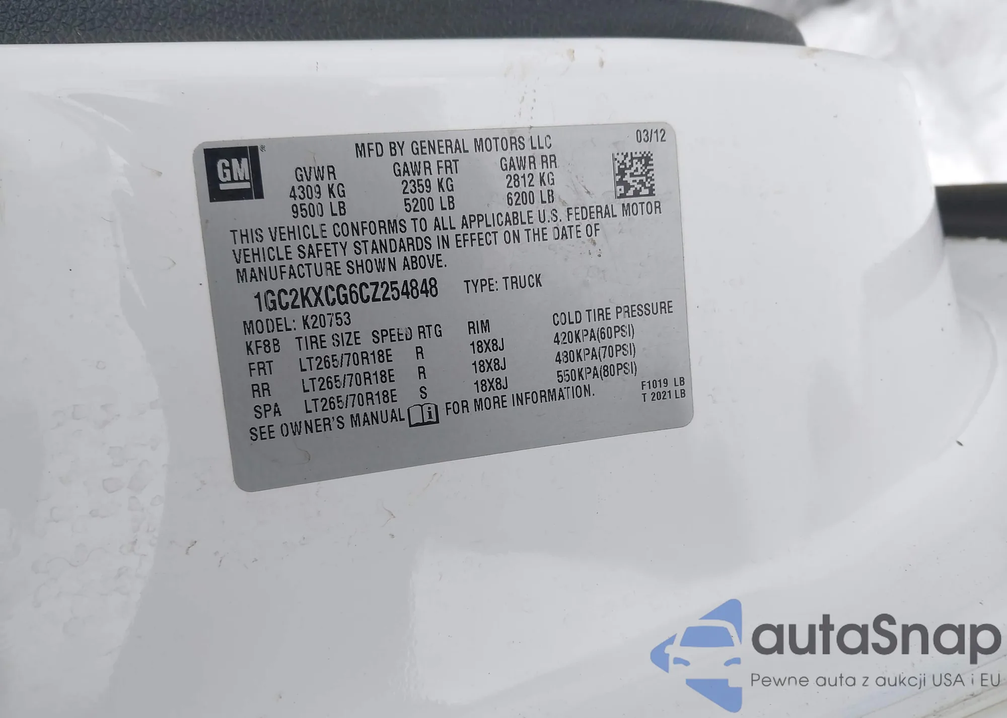 • VIN 1GC2KXCG6CZ254848