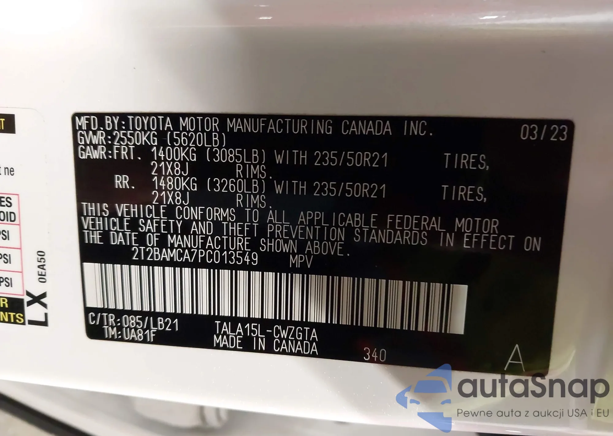 • VIN 2T2BAMCA7PC013549