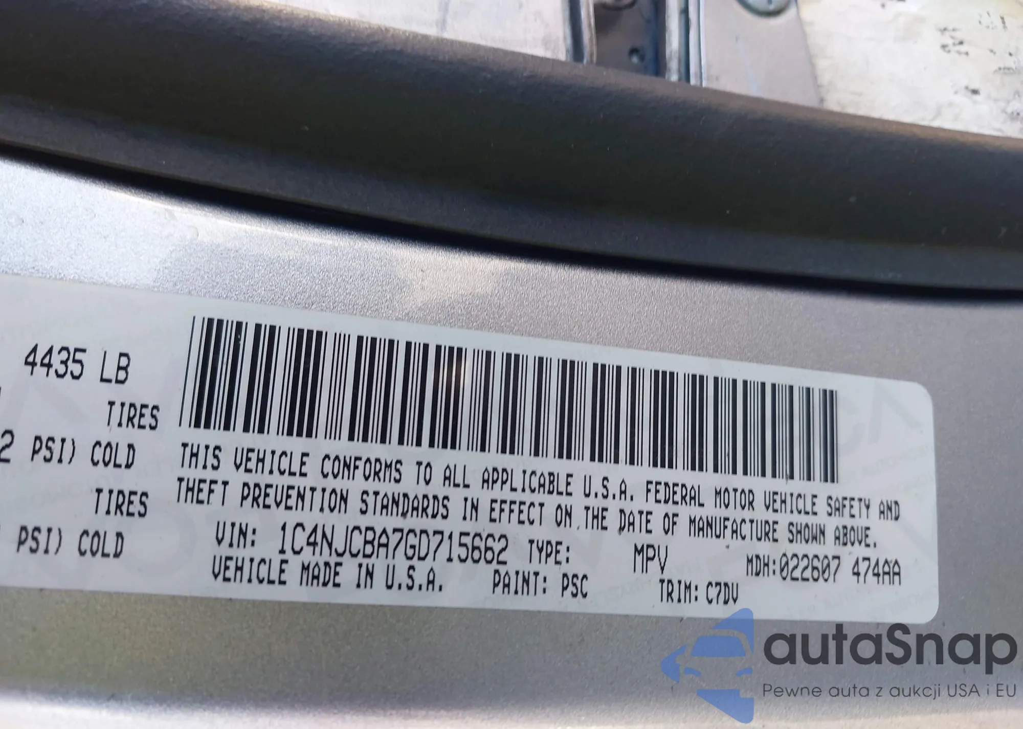 • VIN 1C4RDJEG7FC244856