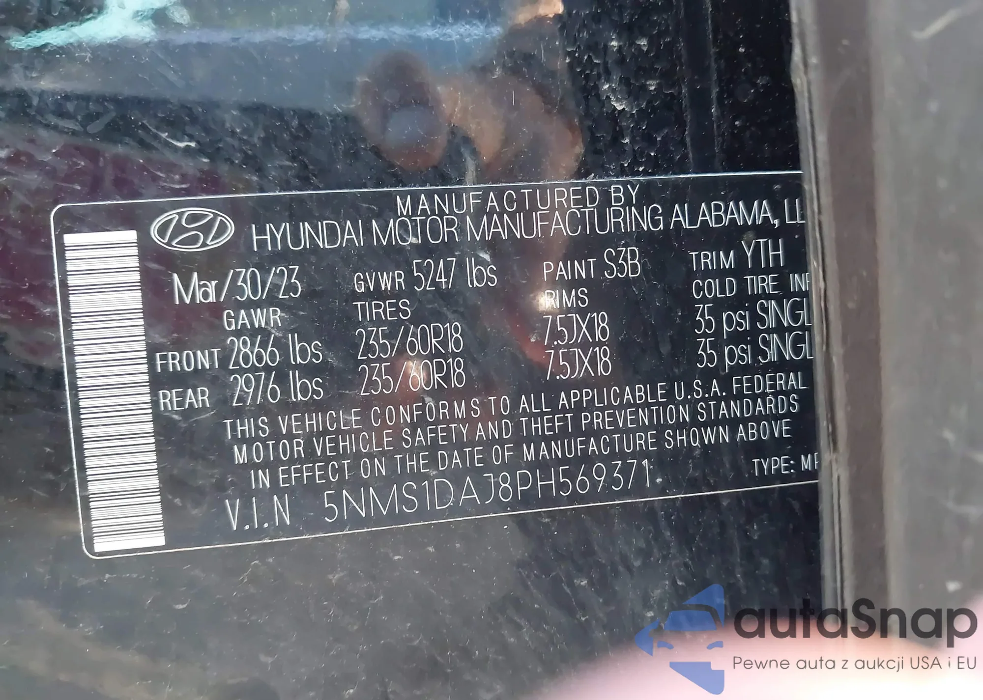 • VIN 5NMS1DAJ8PH569371