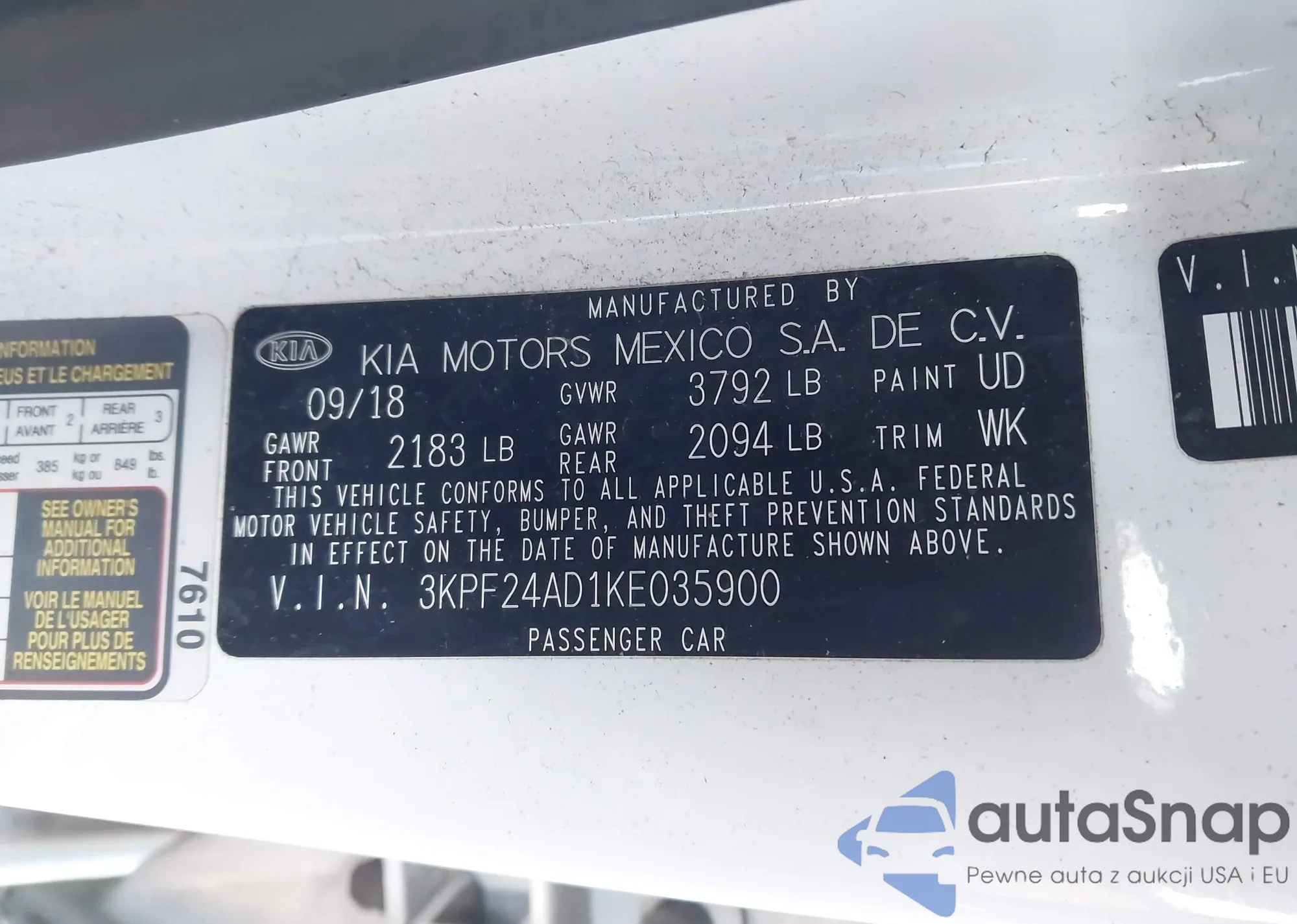 LOT: 44027168 VIN: WBXYJ5C30JEF75714