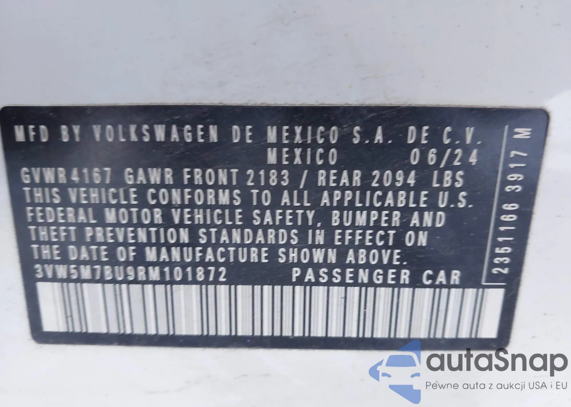 • VIN 3VW5M7BU9RM101872