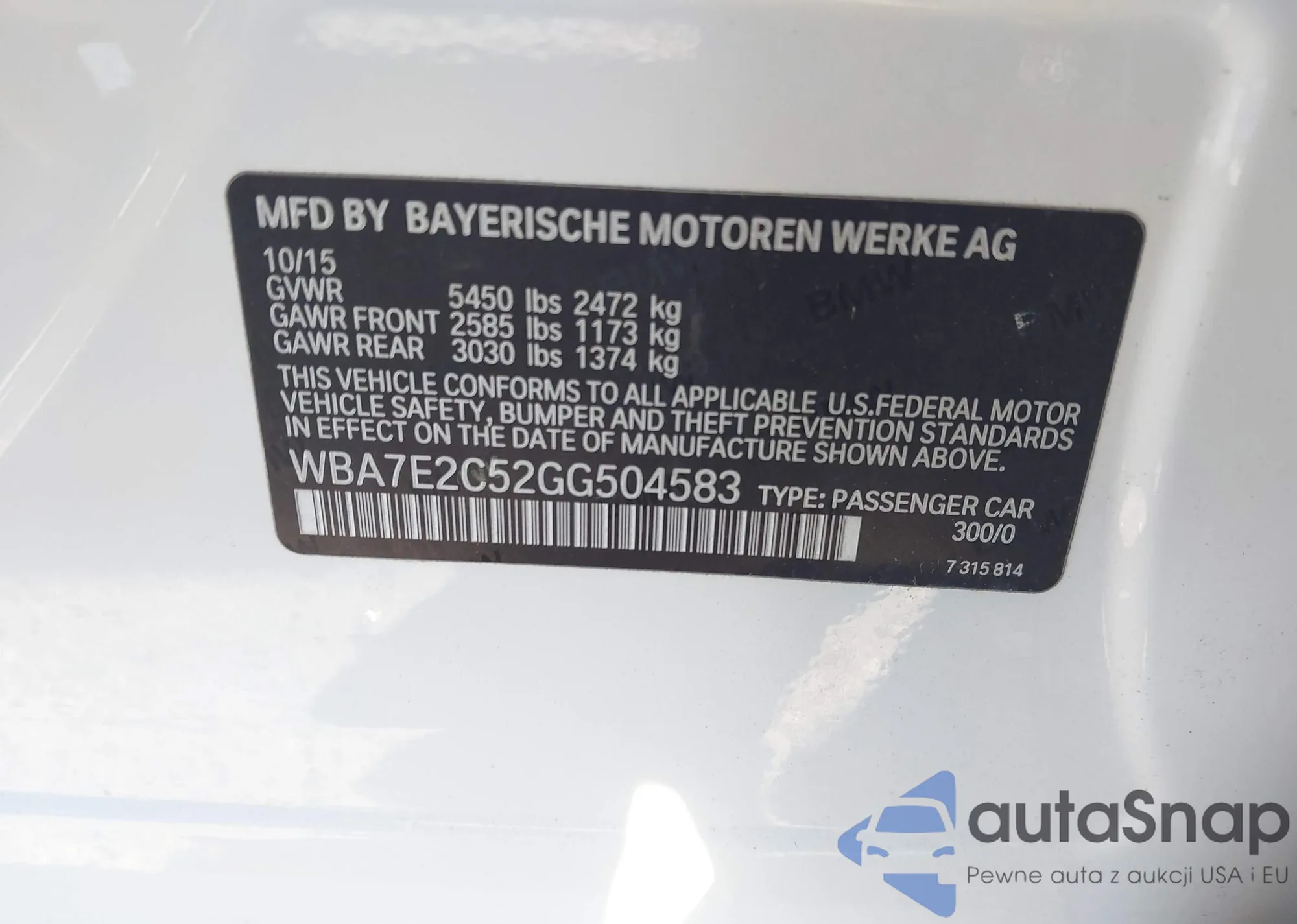 • VIN WBA7E2C52GG504583
