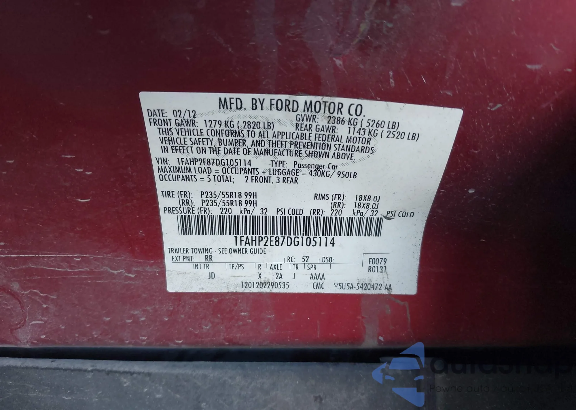 LOT: 43960471 VIN: WAUBGAFLXEA027720