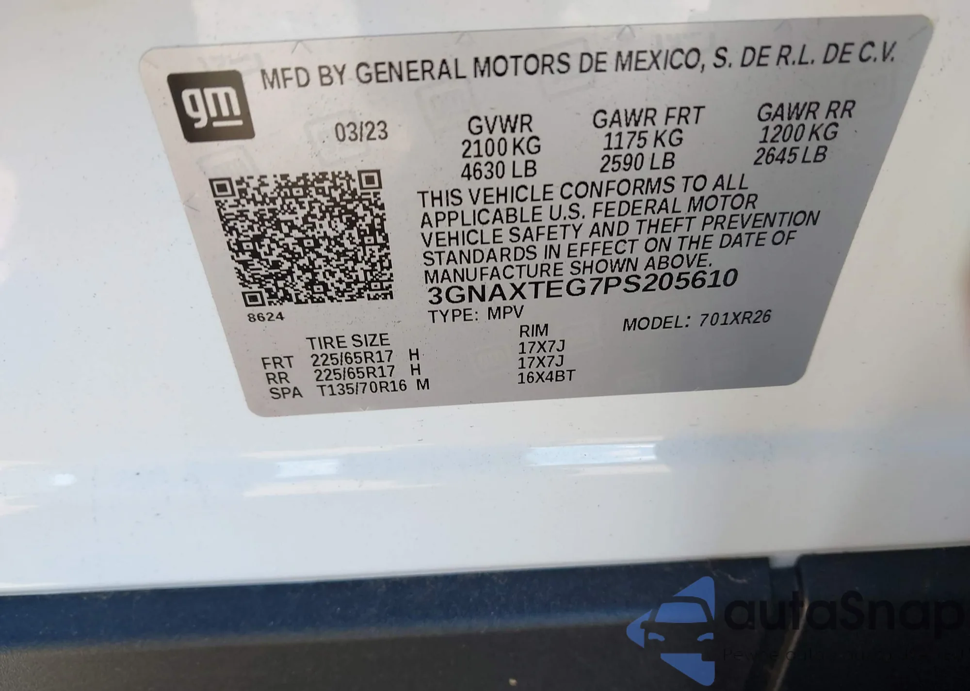 • VIN 3GNAXTEG7PS205610