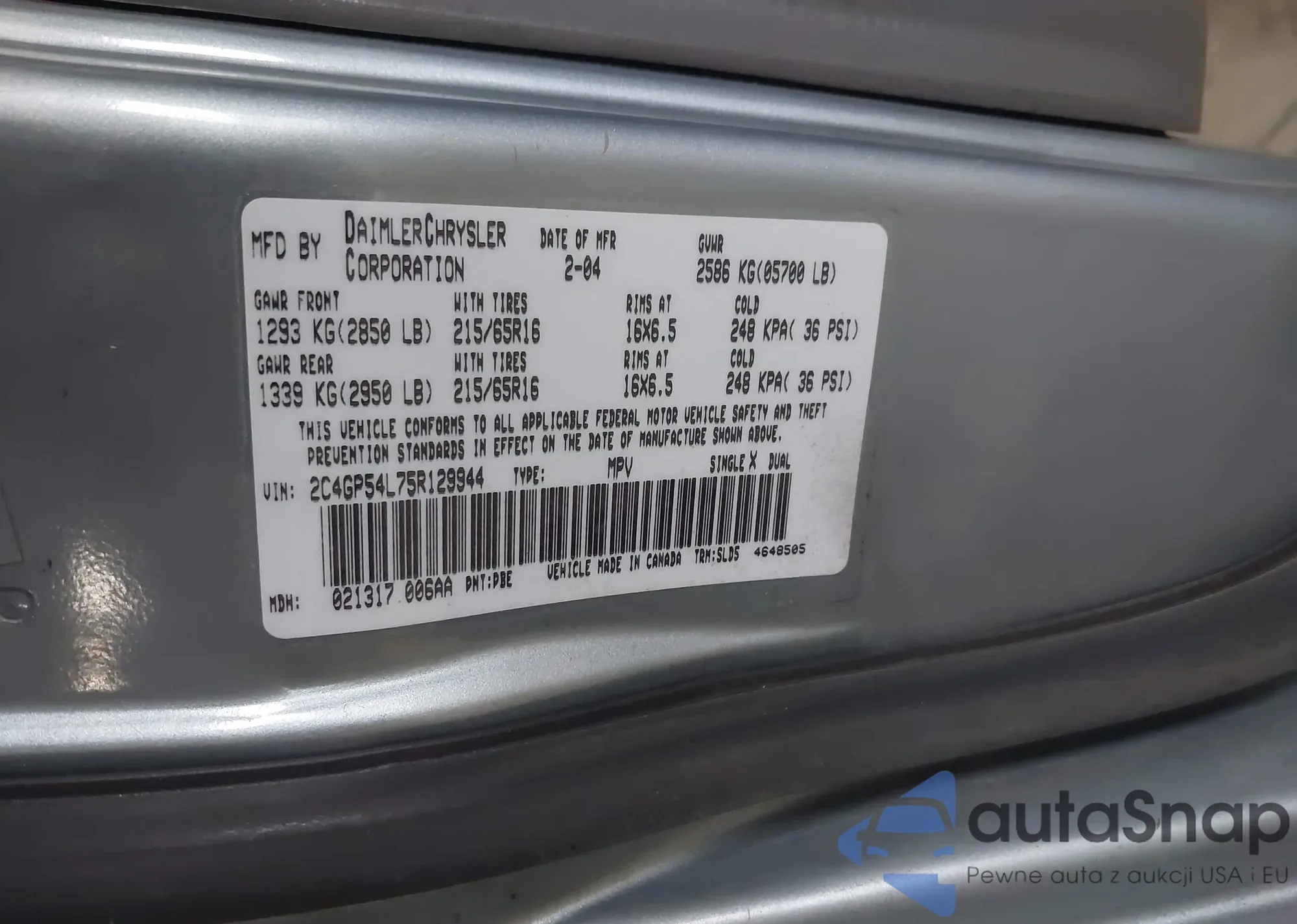 LOT: 43994904 VIN: 2C4GP54L75R129944