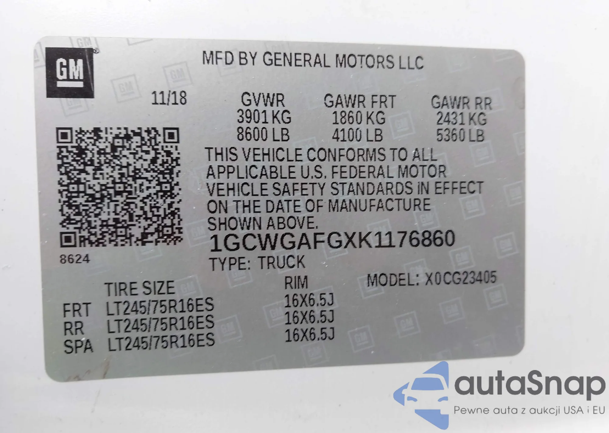 • VIN 1GCWGAFGXK1176860