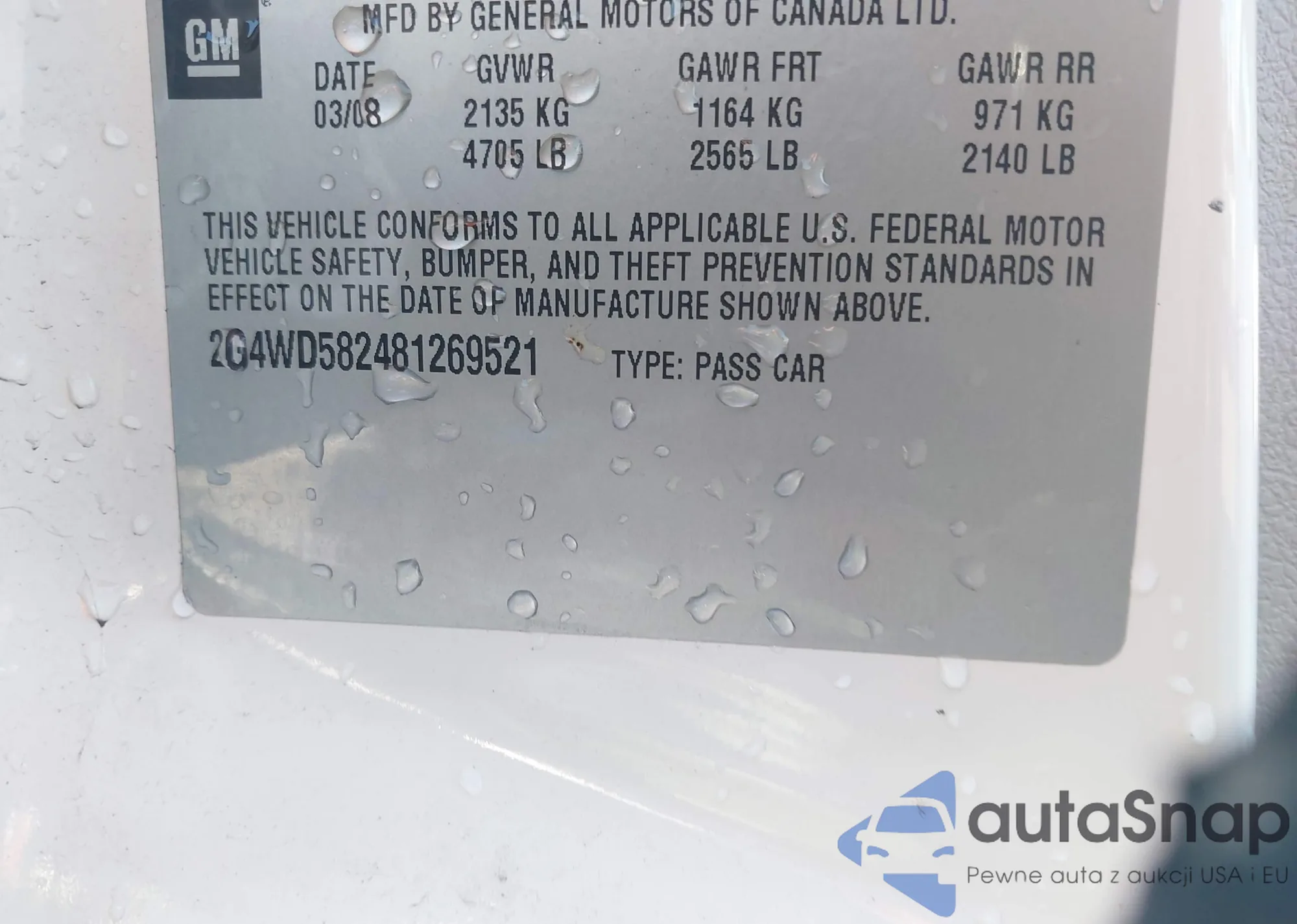 LOT: 43896153 VIN: 2G4WD582481269521