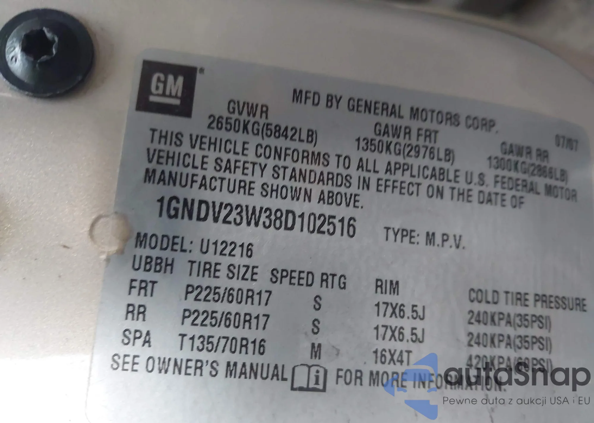 • VIN 1GNDV23W38D102516