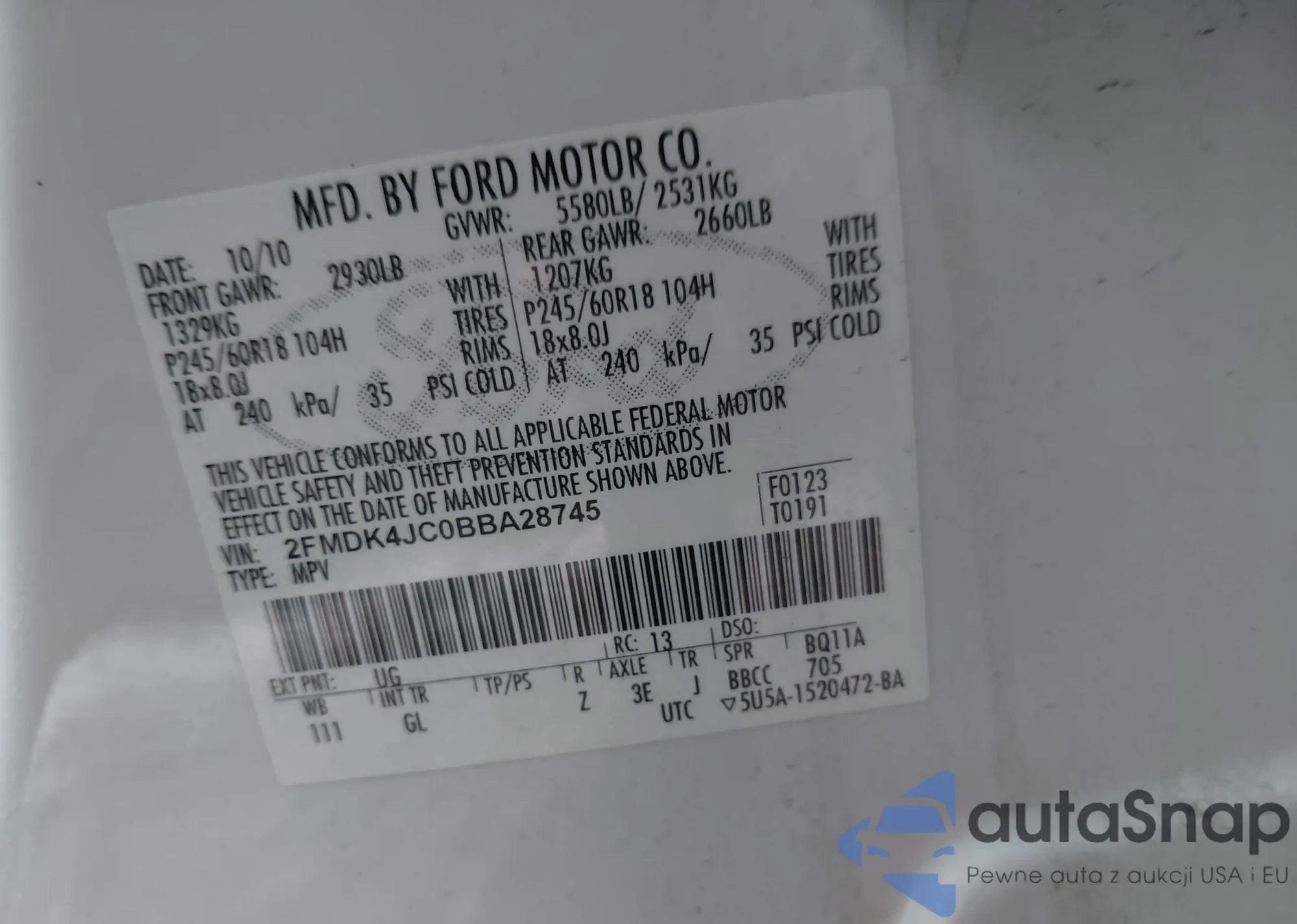 LOT: 44083298 VIN: 2FMDK4JC0BBA28745