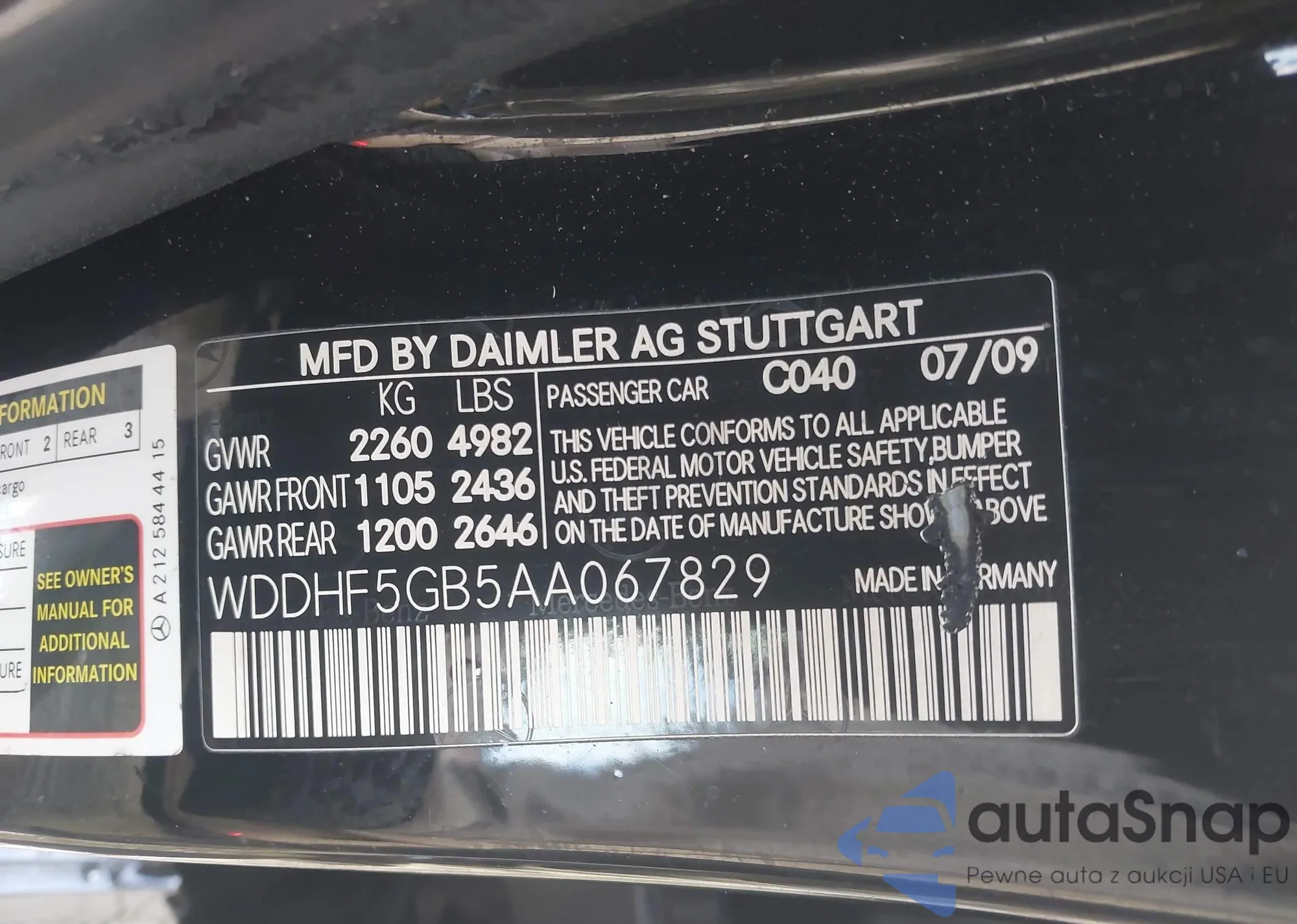 • VIN WDDHF5GB5AA067829