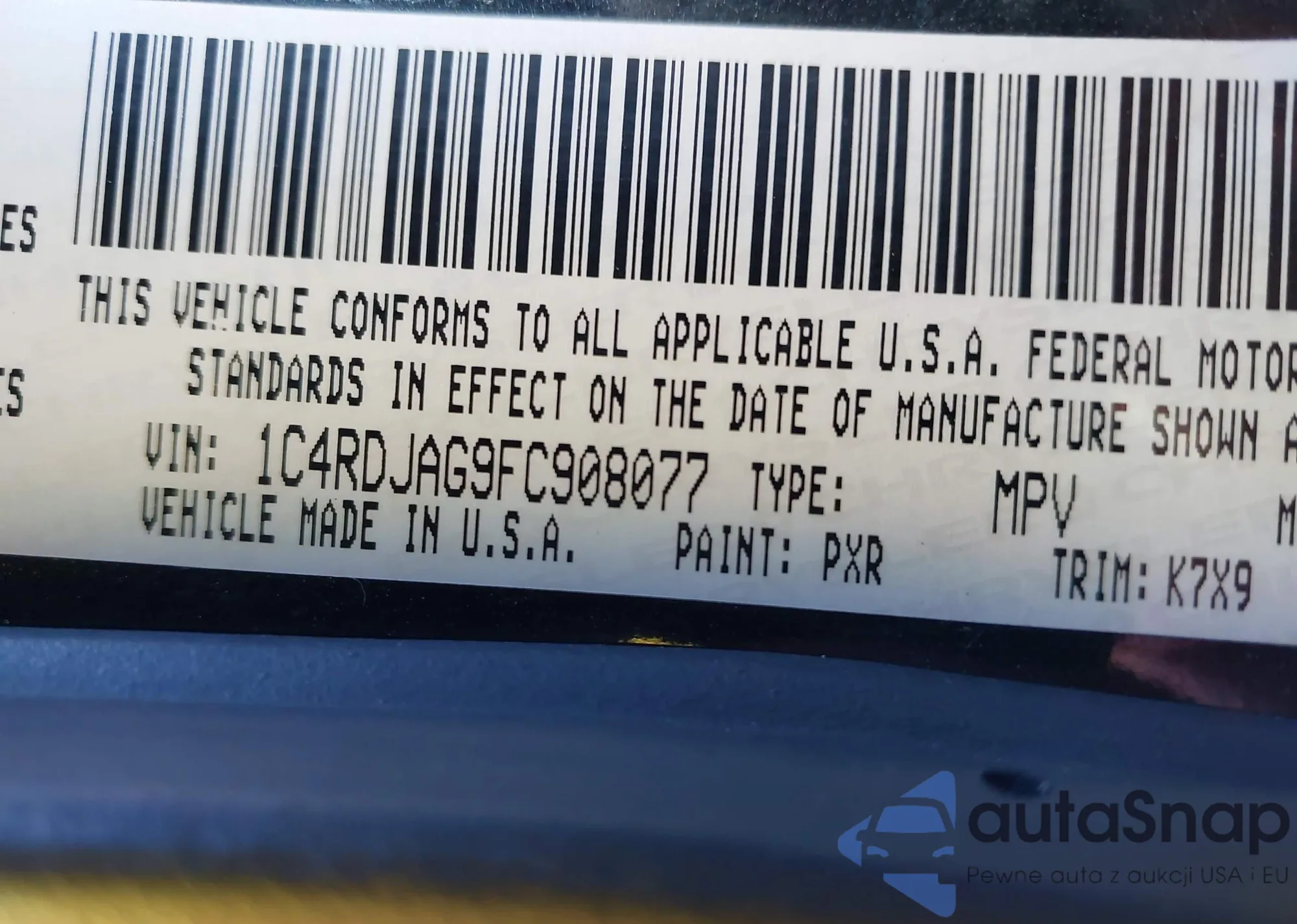 • VIN 1C4RDJAG9FC908077