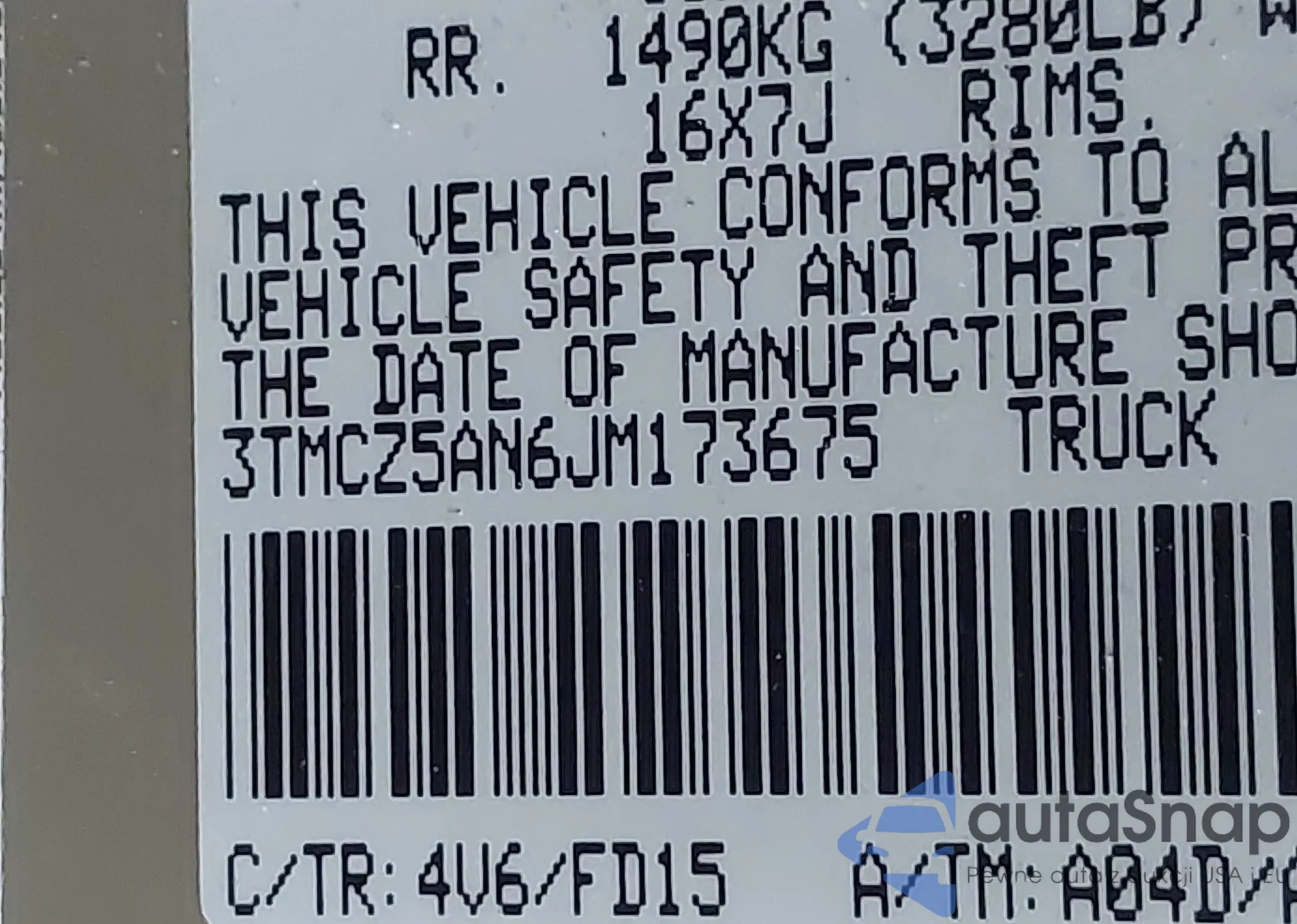 • VIN 3TMCZ5AN6JM173675