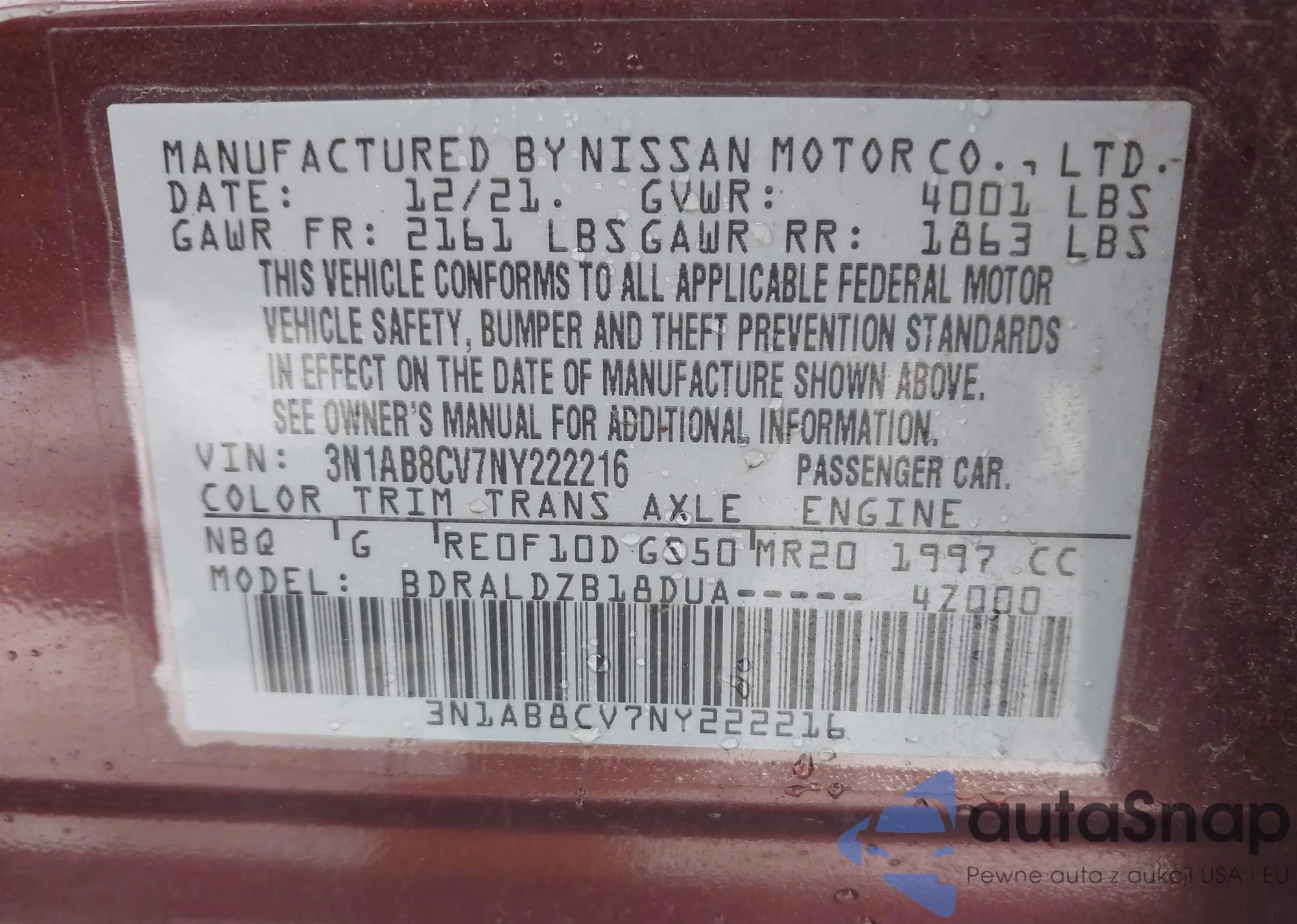 • VIN 3N1AB8CV7NY222216