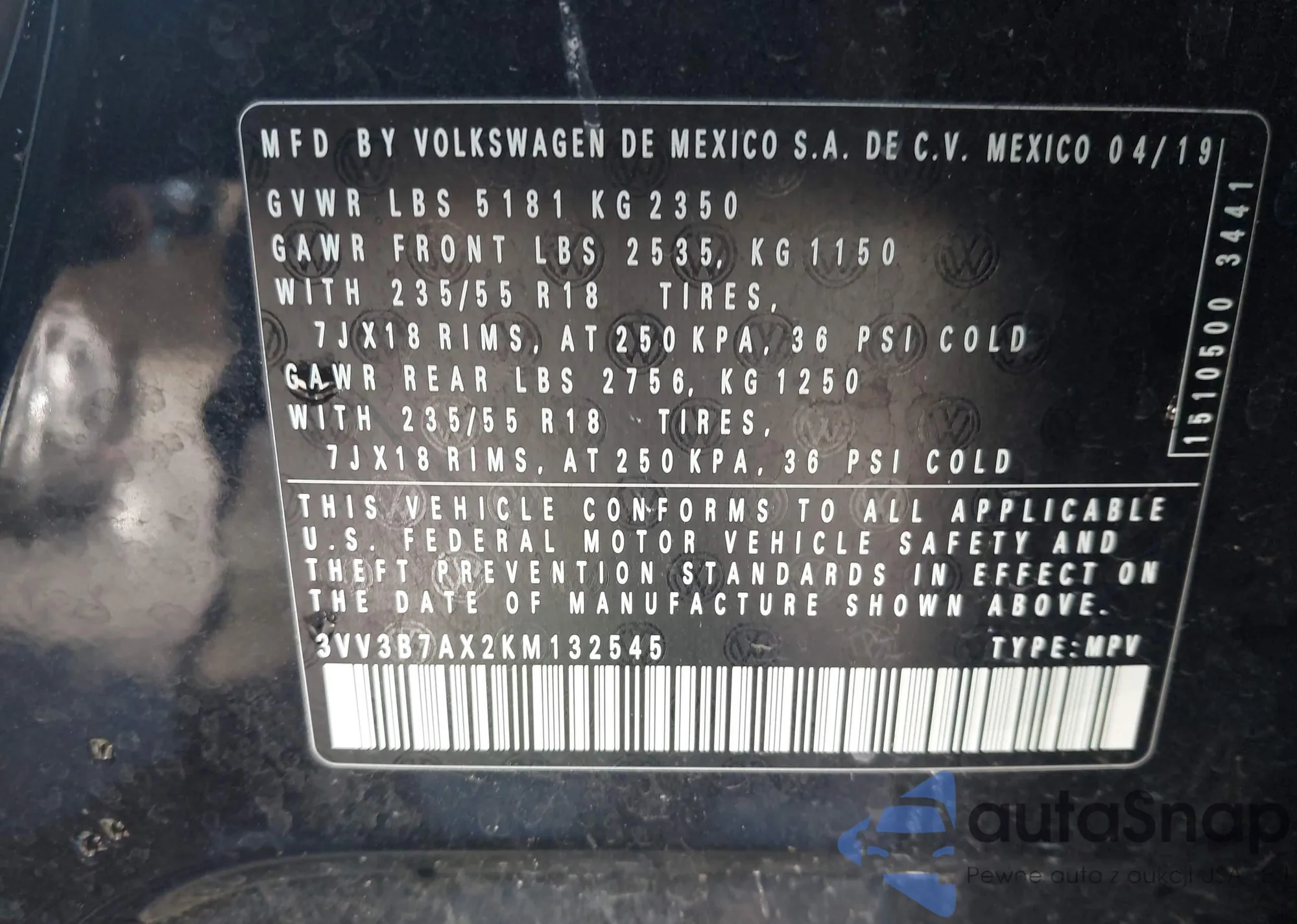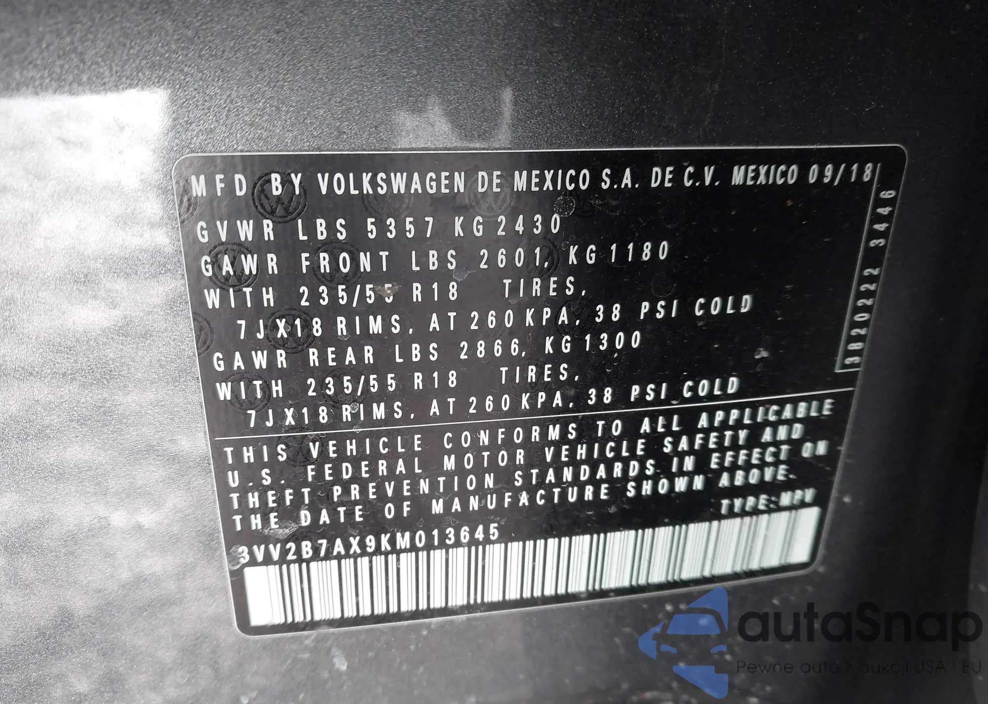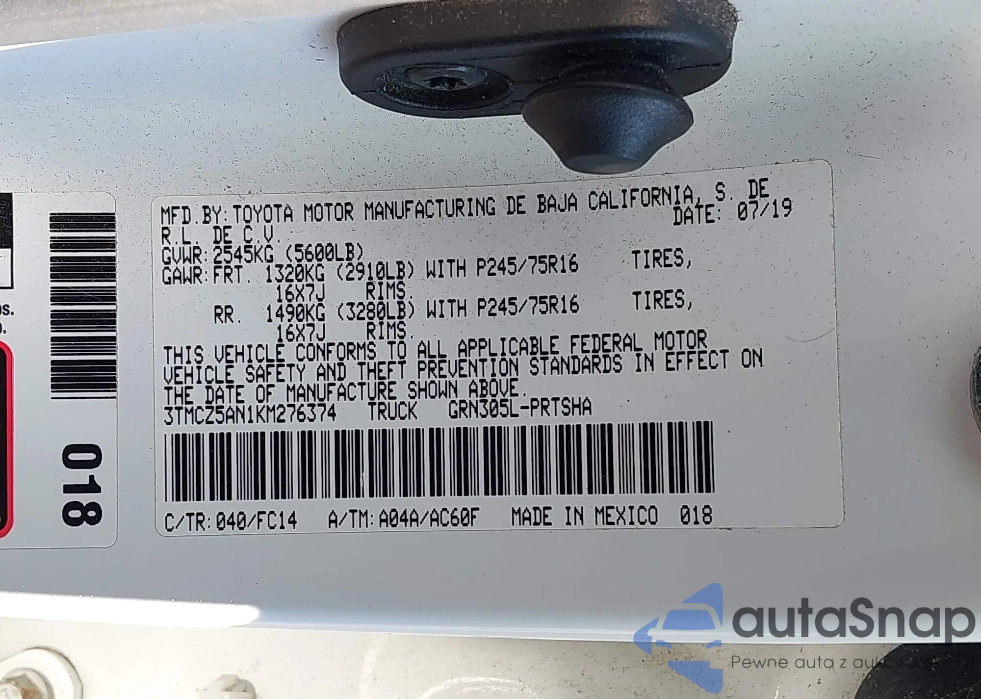 • VIN 3TMCZ5AN1KM276374