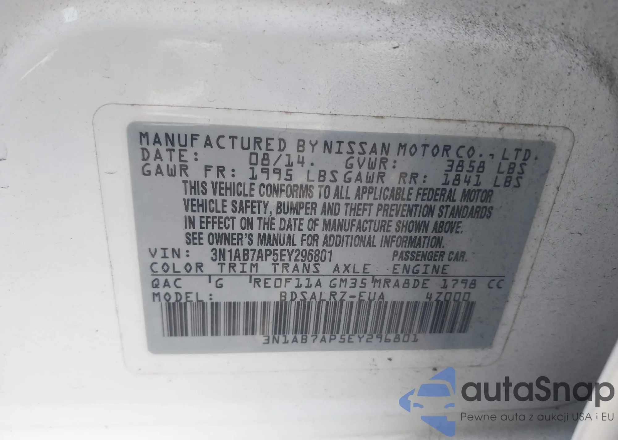 • VIN 1N4BL4BV2LC285342