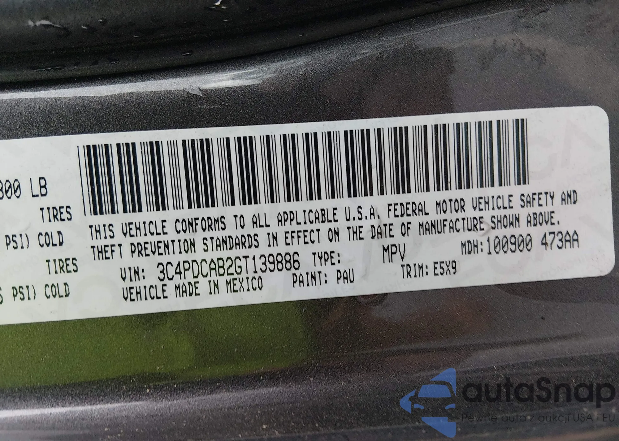 LOT: 44035499 VIN: 3C4PDCAB2GT139886