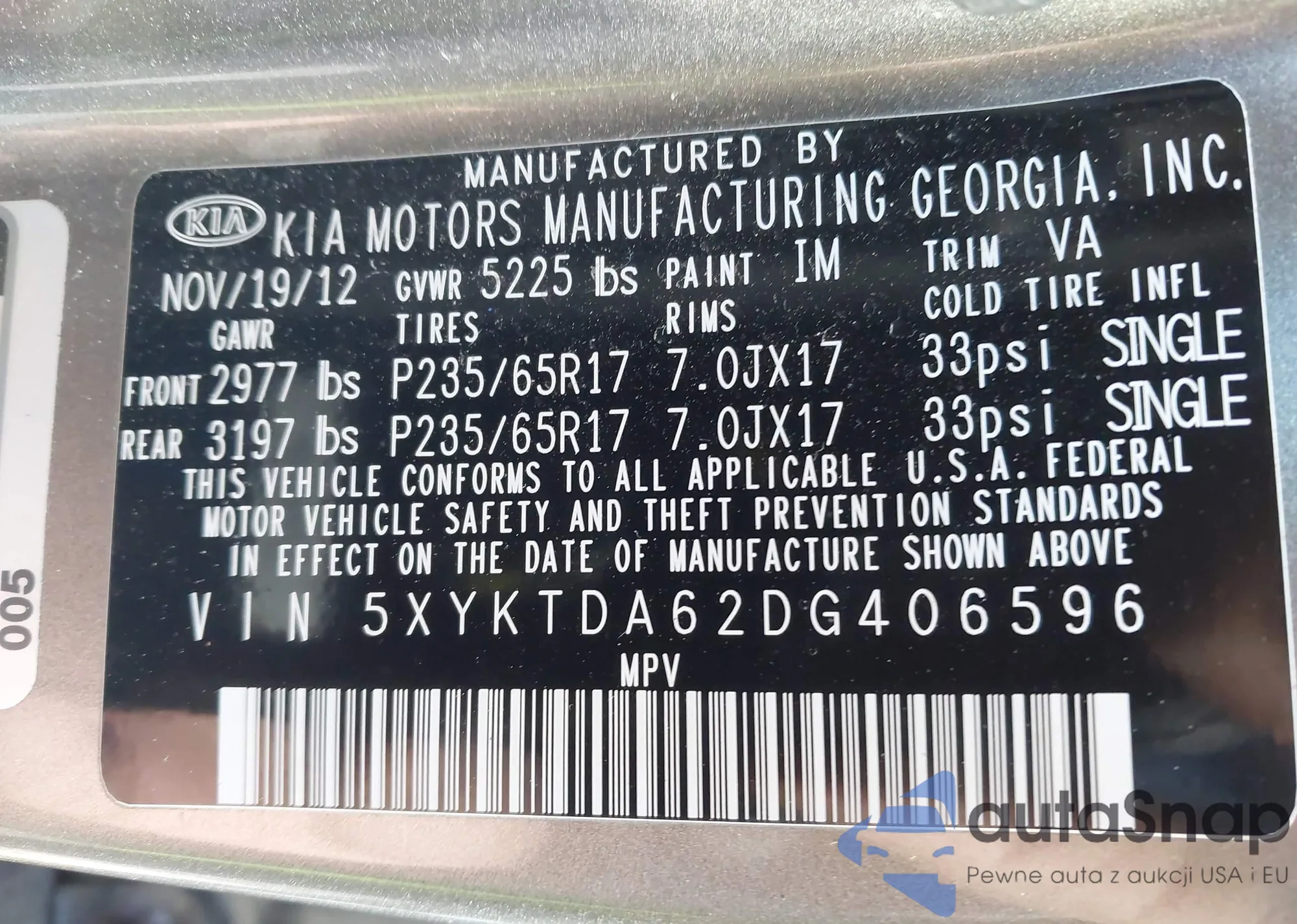 • VIN 5XYKTDA62DG406596
