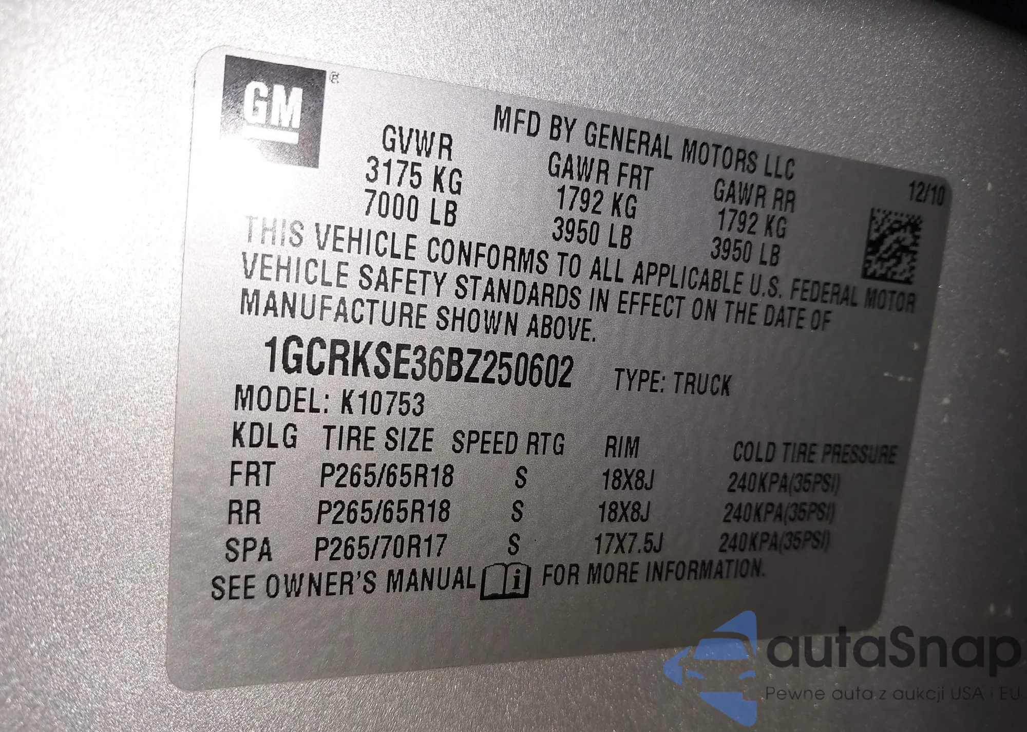• VIN 1GCRKSE36BZ250602